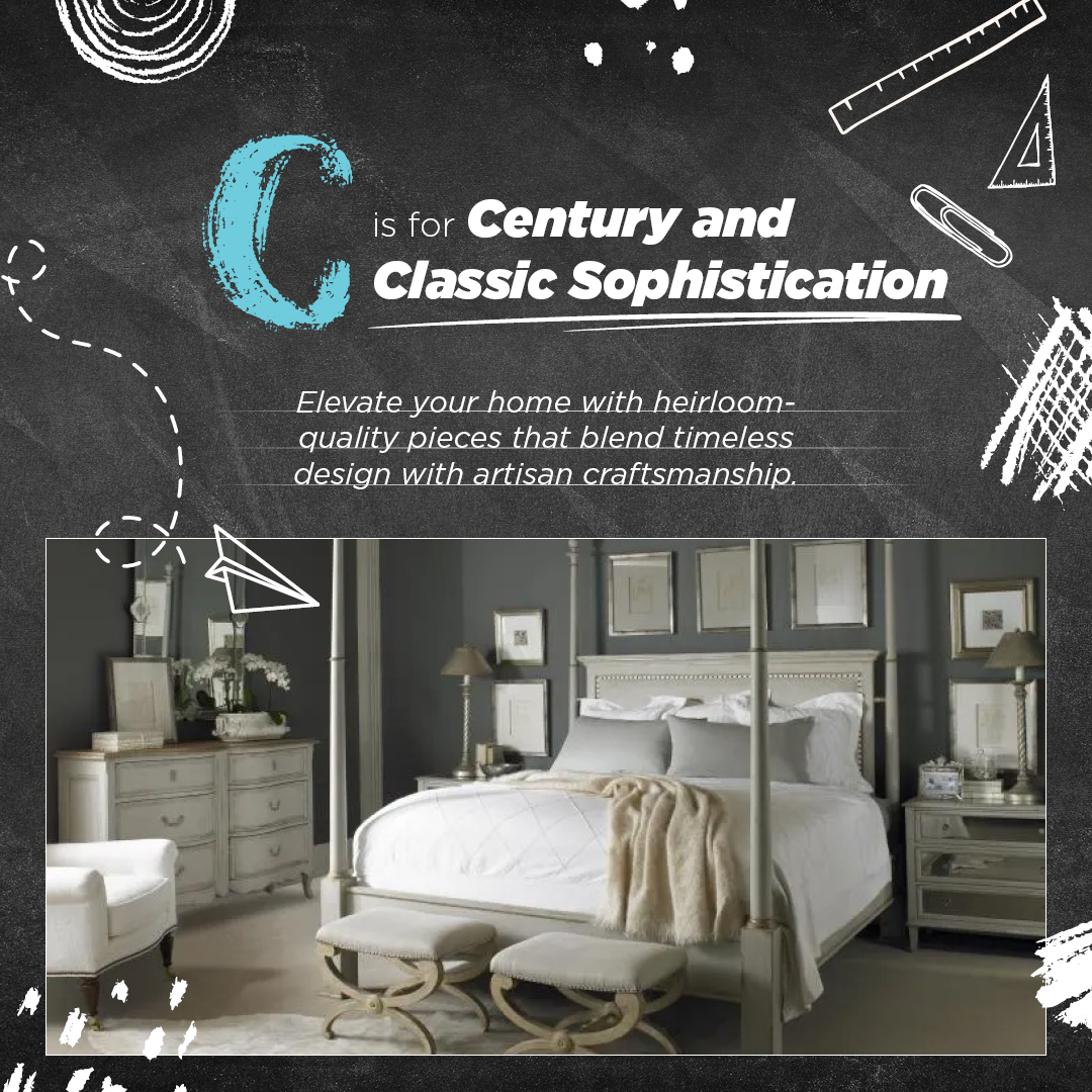 …and their classic sophistication. Century is a longstanding name in the furniture industry with the classic, quality pieces your family has known and loved for generations – just like the Madeline Poster Bed, a true treasure!