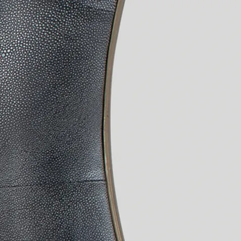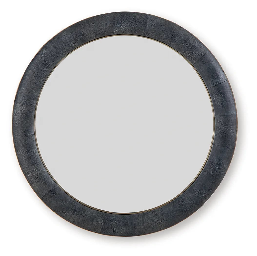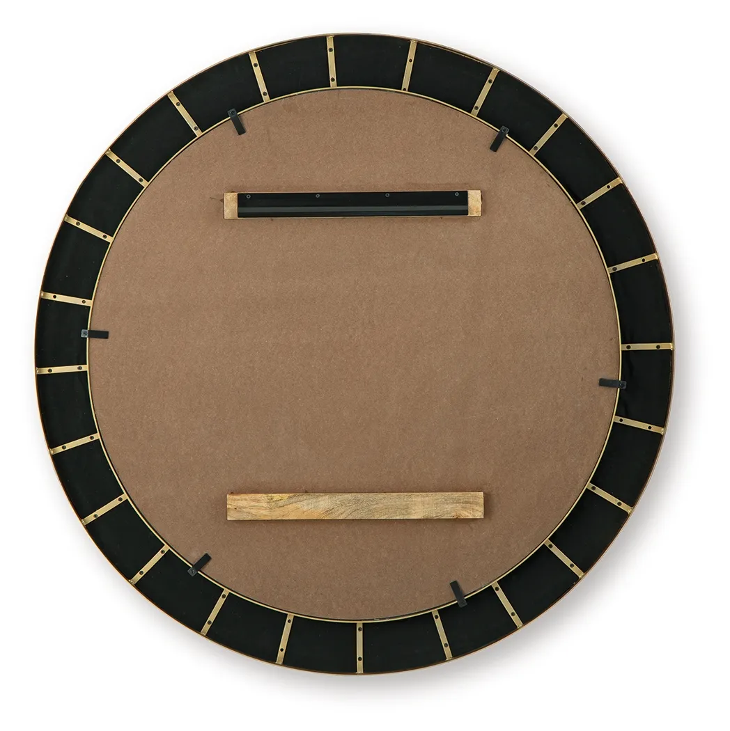 Make a bold impression with this accent mirror. Its captivating blend of brass-tone metal and charcoal-colored leather brings contemporary elegance and depth to entryways, bedrooms or any space deserving of extraordinary style.