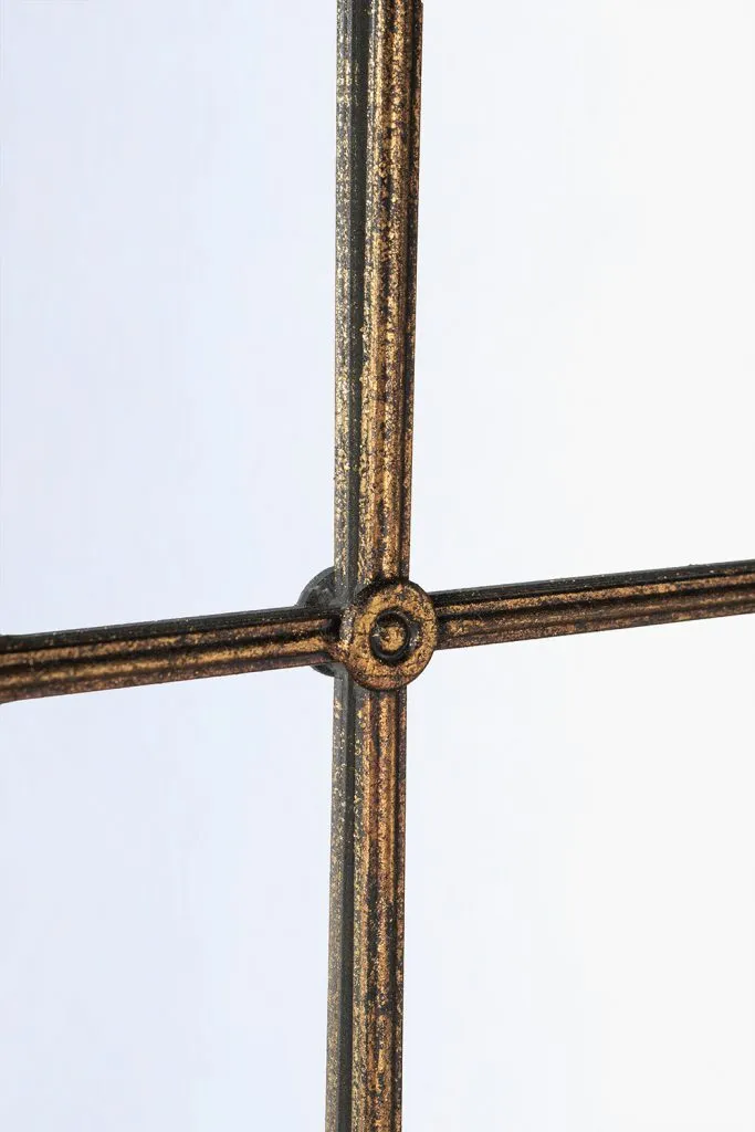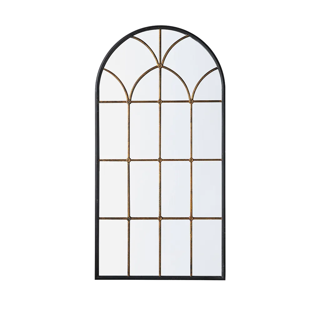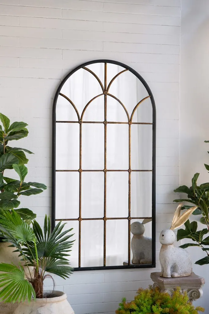 Featuring a grand, arched silhouette, a blend of sleek black and warm gold tones, and an elegant windowpane design, this decorative mirror will elevate any space. The simple, timeless style makes it a perfect focal point for any living room, entryway, or bedroom, capturing your full reflection while effortlessly complementing any interior theme.