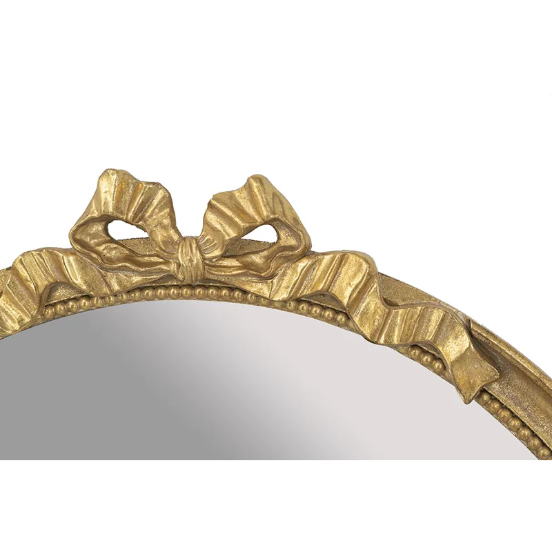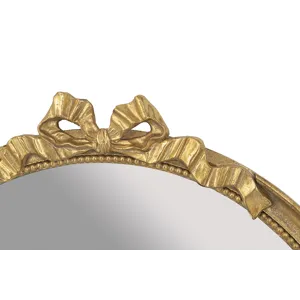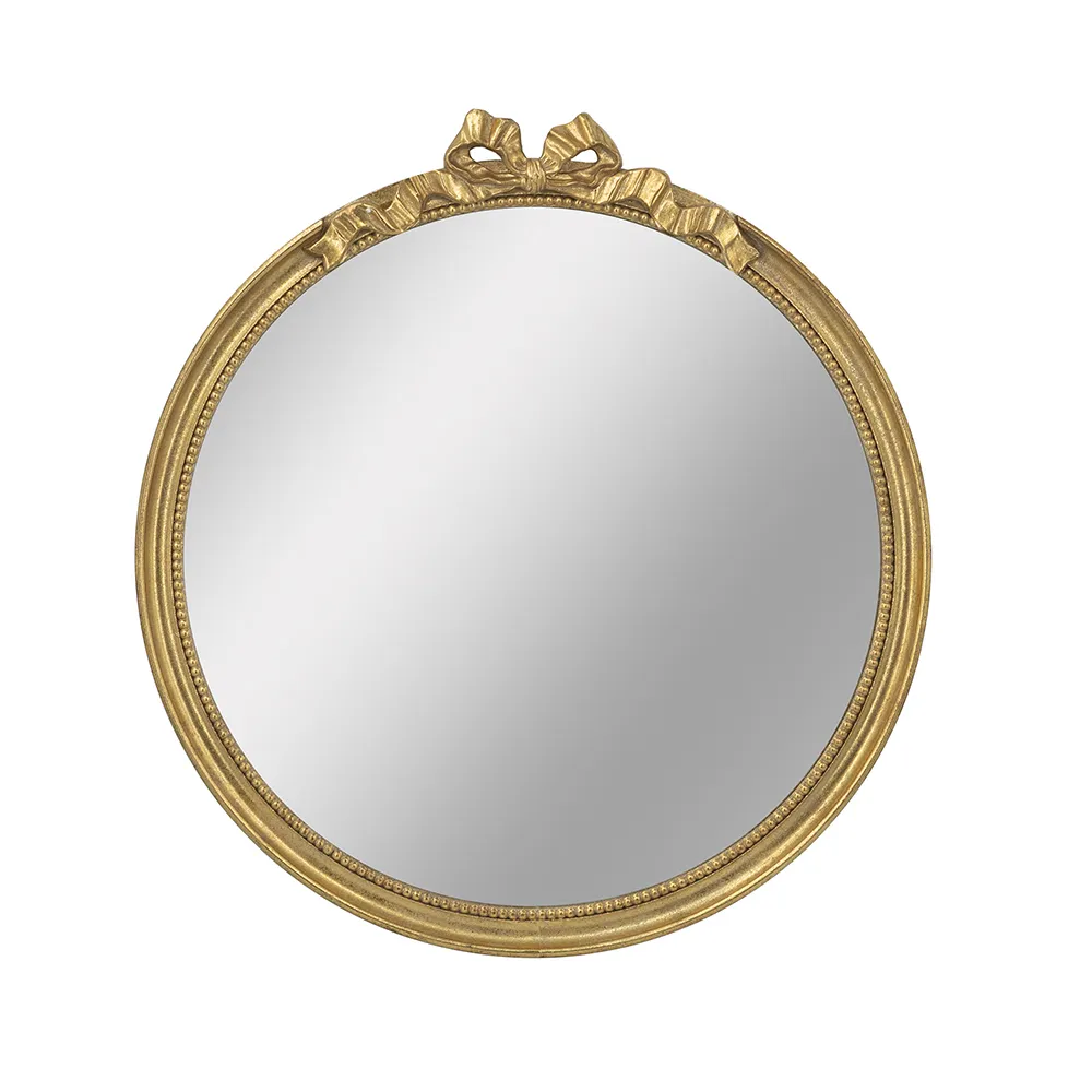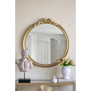 Drawing inspiration from the irresistible beauty of Baroque artworks, this accent mirror features a round wooden frame, a rich gold finish, and an alluring scrollwork crown. Whether mounted in your living room, entryway, or bedroom, it will seamlessly blend into any interior style, serving as a long-lasting statement piece.