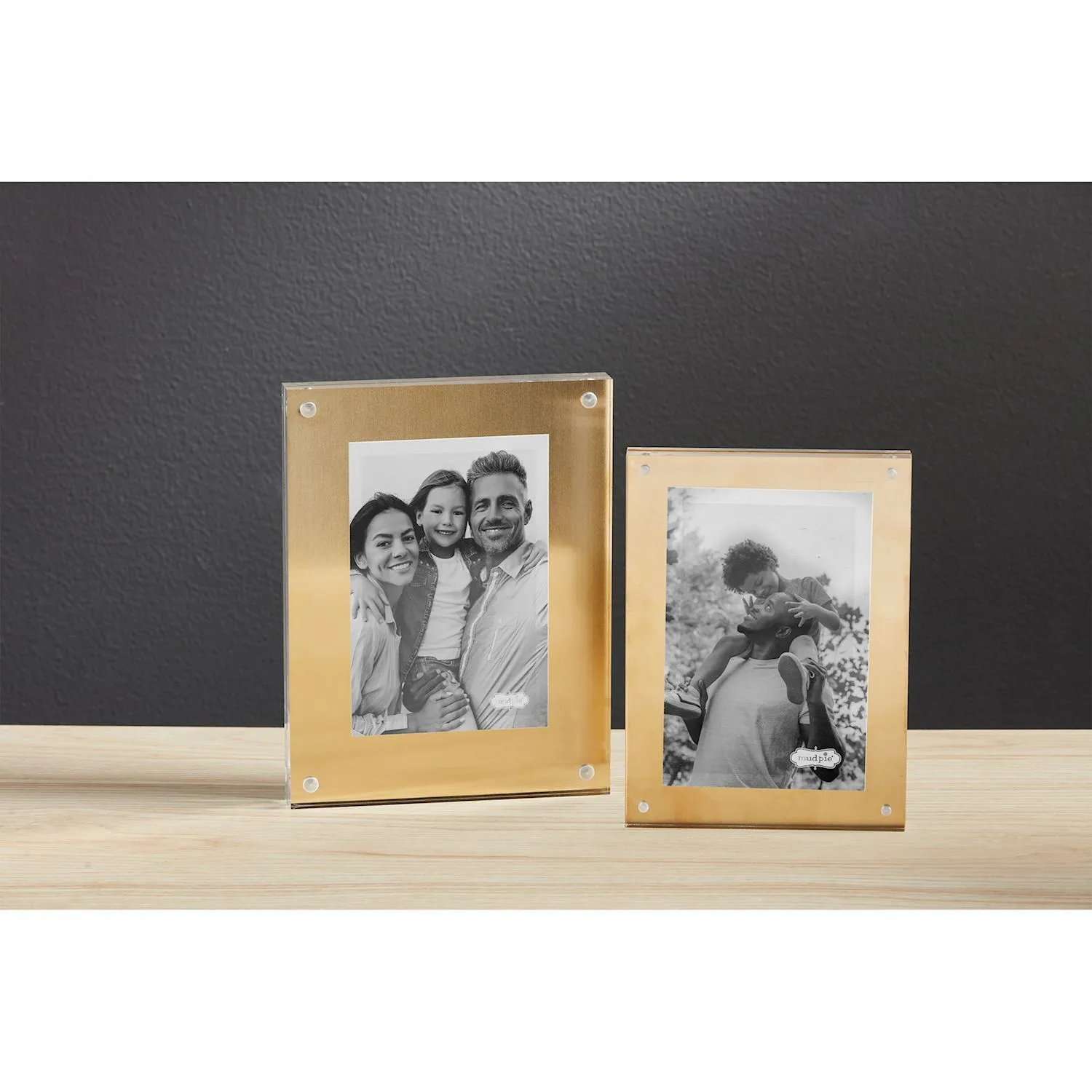 Acrylic block 4" x 6" frame with brass detail and magnetic acrylic surface.