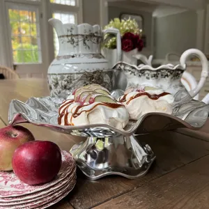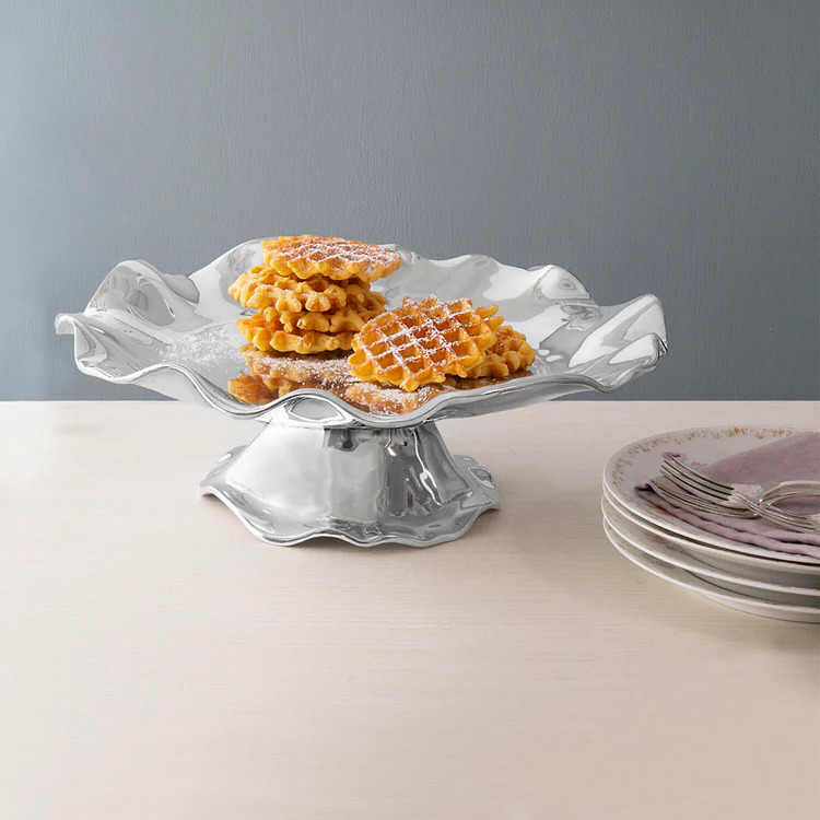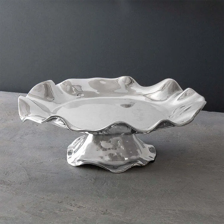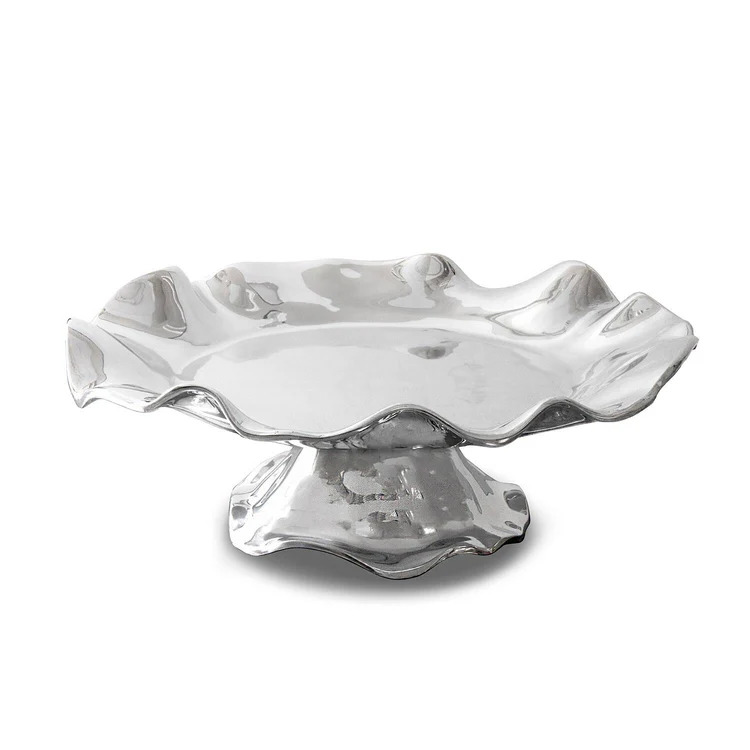 All rise ... The Beatriz Ball PEDESTAL Vento Olanes Cake Plate elevates anything served on it. A fusion of fashion and function, this platter's sleek silver surface and flirty curves are a delight to the senses. A brilliant expression of the "good life" in a beautiful handmade piece to be enjoyed every day. An original design by Beatriz Ball that makes a great gift for the cook or desert lover in your life. Made of a top quality, FDA safe, easy-care, oven and freezer friendly aluminum alloy. Tarnish free.