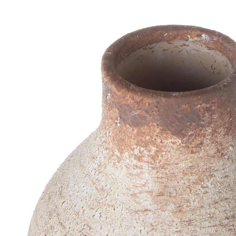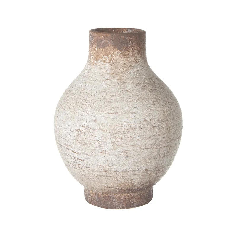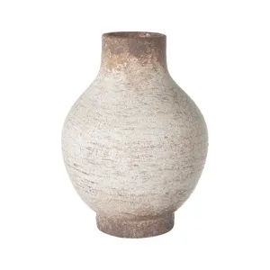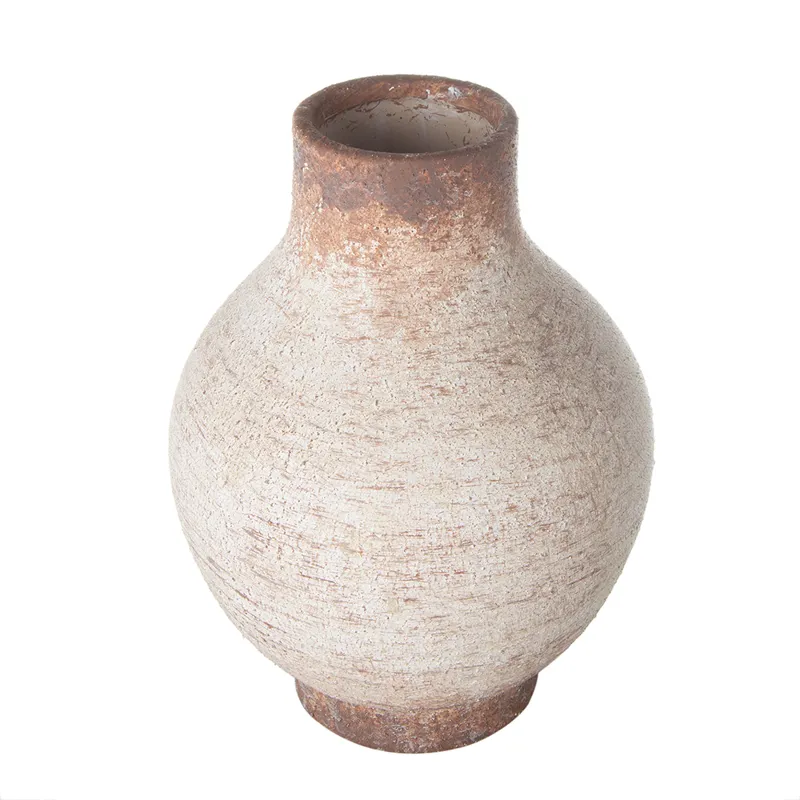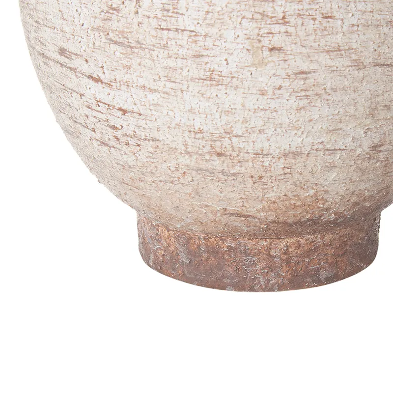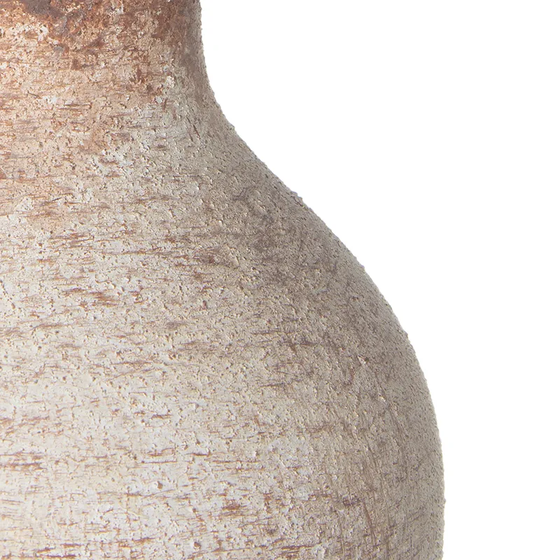 Featuring a curved shape and a blend of earthy white and brown hues, this footed accent vase is crafted from high-quality ceramic and expertly combines functionality and a shabby chic flair. Offering versatility, it could be displayed on your tables, countertop, or mantel, catching the eye of your guests either on its own or as part of a centerpiece.