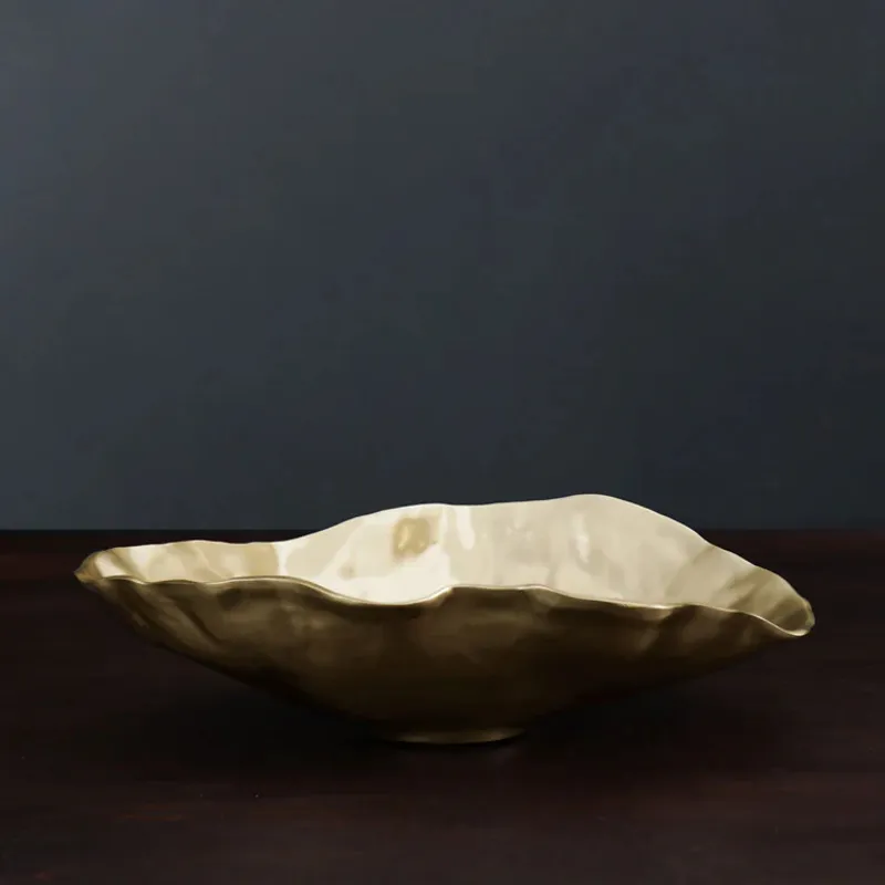 Brighter days ahead. The dynamic new SIERRA MODERN Collection from Beatriz Ball is distinguished by the sculptural Maia large oval bowl in a shimmering shade of champagne gold. The fabulous piece--the largest of three--is remarkable for its generous shape, velvety surface and exuberant design; an item that's sure to delight. Passionately handmade by skilled artisans in our own foundry, the Maia bowls are made with a prorietary process that creates modern metallic finishes that are easy-care and practical, as well as jaw-droppingly beautiful. Paired with handsome surfaces and unexpected shapes, they are a re-invention of metalware that will transform today's table--and your home. Great centerpiece or fruit bowl, the large Maia bowl makes a dramatic statement wherever it is placed. With its velvety gold finish, the large Maia bowl is truly a standout, and makes a sensational luxe gift for newlyweds. Beatriz Ball’s intensely handmade products employ eco-friendly and sustainable materials, and are crafted by artisans who trace a heritage of metalworking for generations. An original Beatriz Ball design, sustainably handmade of a top quality, FDA safe, easy-care aluminum alloy.