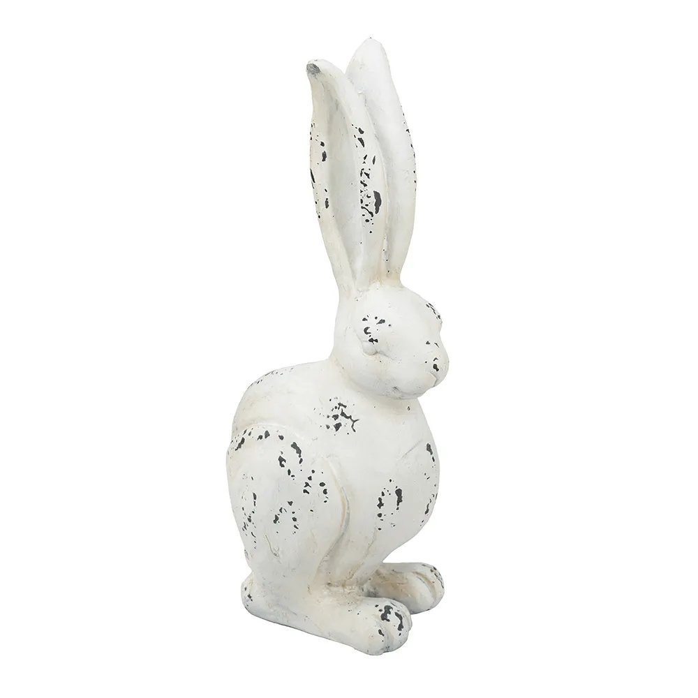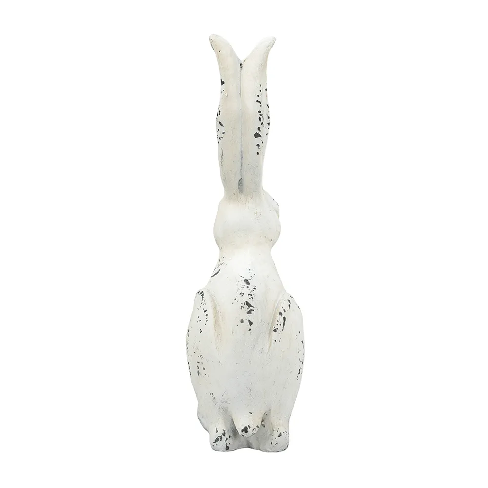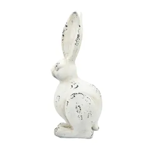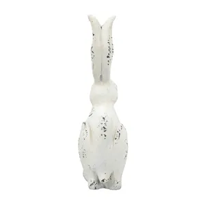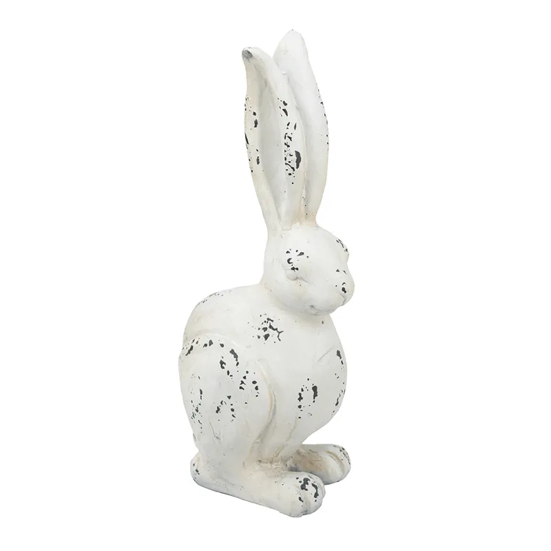 With its long ears,inquisitive look,and crisp white finish,this Small Rabbit Figurine makes a cheerful addition to any room.Feature this curious fellow in a lush sunroom,white farmhouse kitchen,or on a front porch to create a whimsical display to welcome and delight family and friends.Durable magnesium construction ensures years of charm and beauty in any indoor or outdoor space.