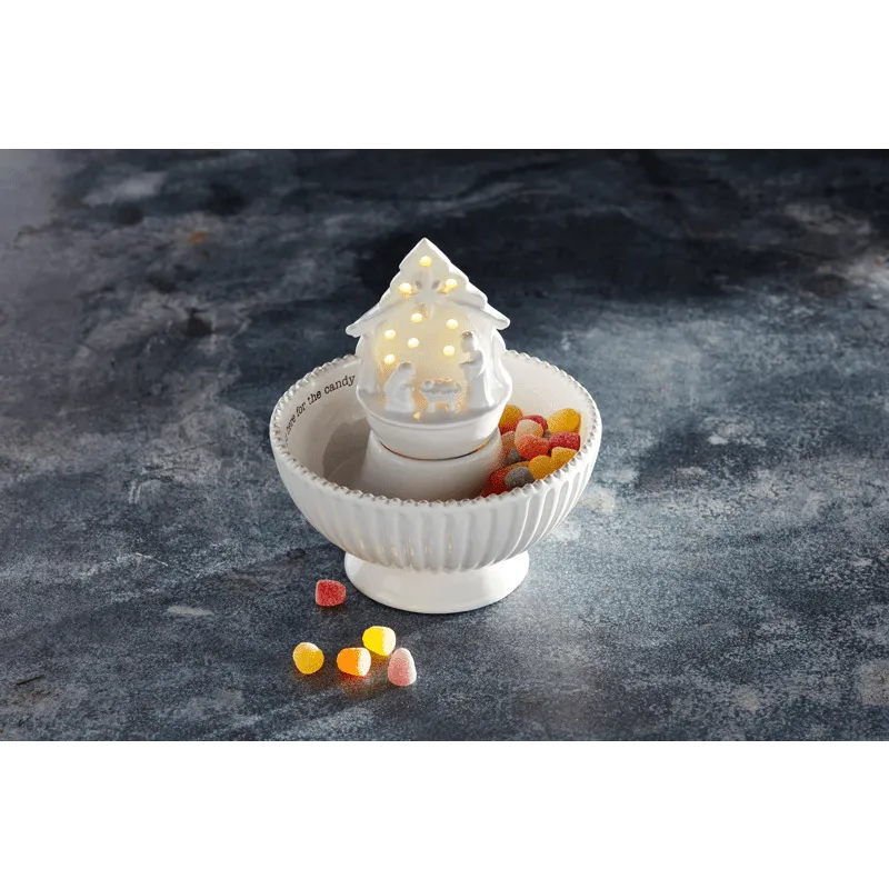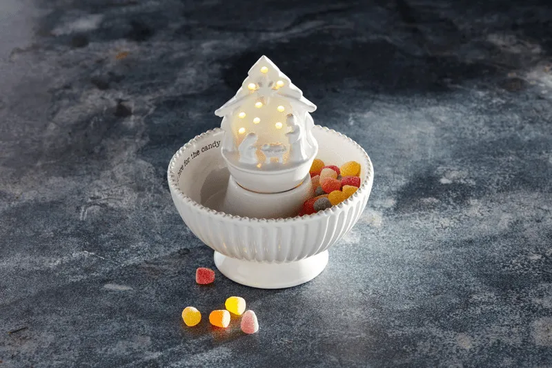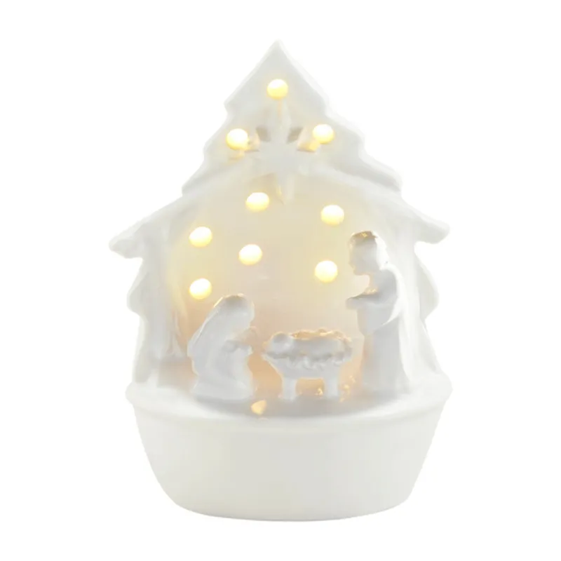 The Light-Up Nativity Sitter is a beautifully crafted ceramic figurine that adds a touch of elegance to your holiday decor. This nativity sitter features intricate pierced holes that allow LED lights to shine through, creating a warm and inviting glow. The included battery ensures that you can enjoy the soft illumination right out of the box. Made from high-quality dolomite, this sitter measures 4 1/2" x 2 3/4", making it the perfect size to display on a mantel, shelf, or tabletop. Illuminate your home with the Light-Up Nativity Sitter and bring the spirit of Christmas into your space.
