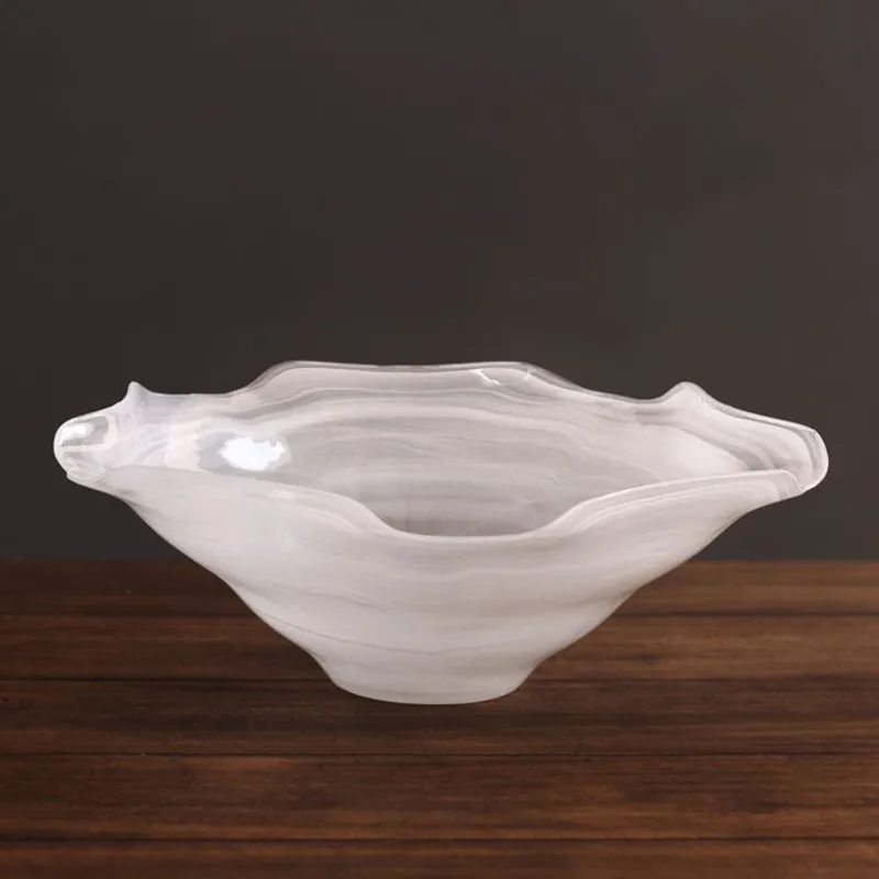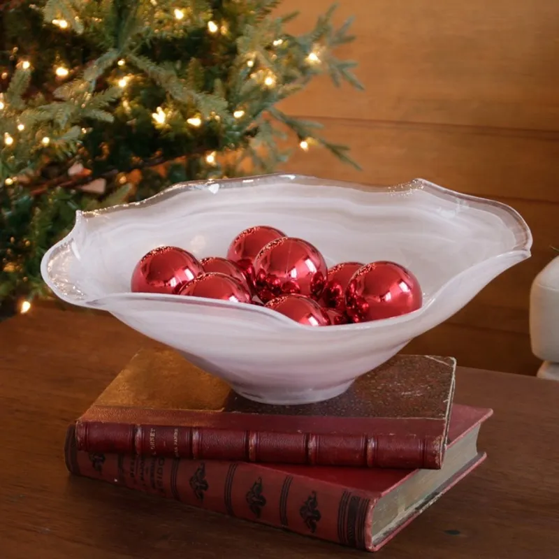 New wave! Presented in overlapping tones of white and clear glass, the GLASS Alabaster Wave Large Bowl (White) is a truly remarkable piece. Flowing and organic, the dynamic design makes a dramatic centerpiece. Available in large and extra-large sizes, this size is great for salads or fruit. Upholding our company's handmade tradition, each piece of hand-cast translucent glass is one-of-a-kind and the lively swirling pattern of tones varies from piece to piece no two pieces exactly alike.
