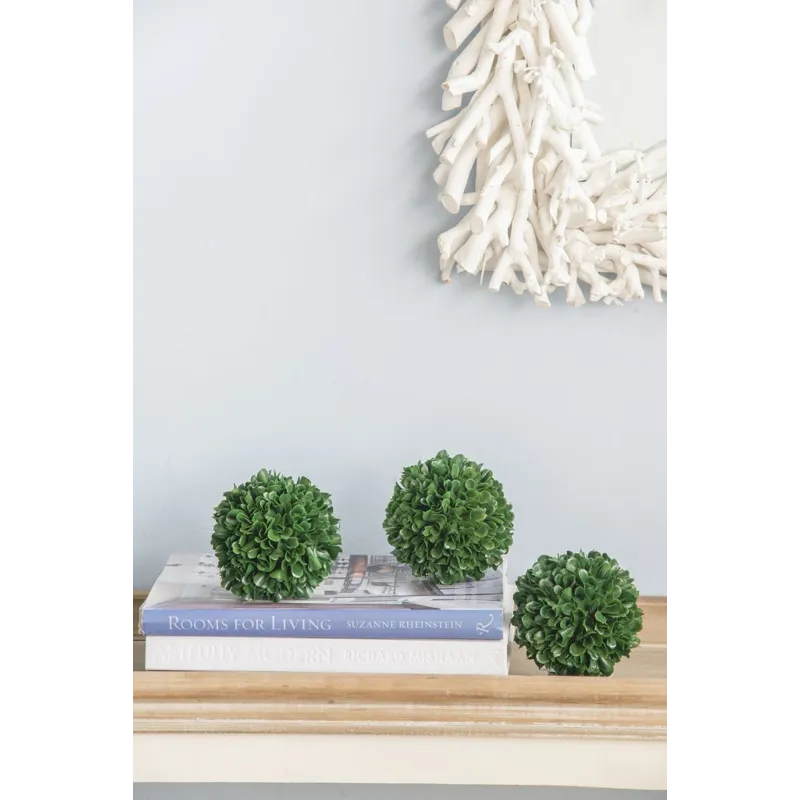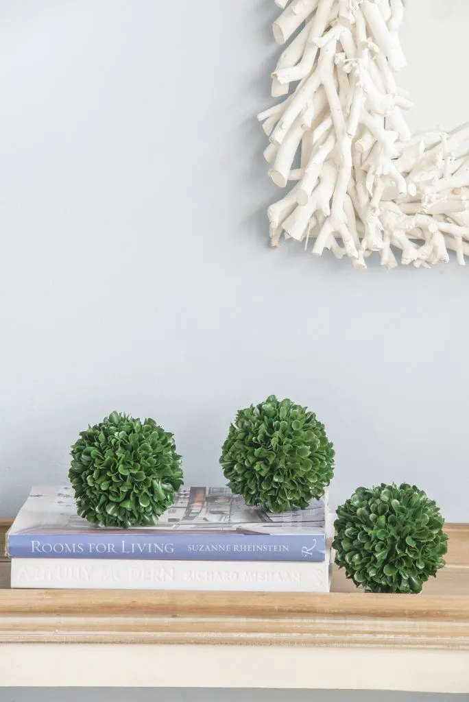 The natural lush green color allows each boxwood topiary to complement almost all interior styles, meaning you can simply slot each ball into your existing living room, dining room, bedroom, office, or entryway decor.