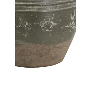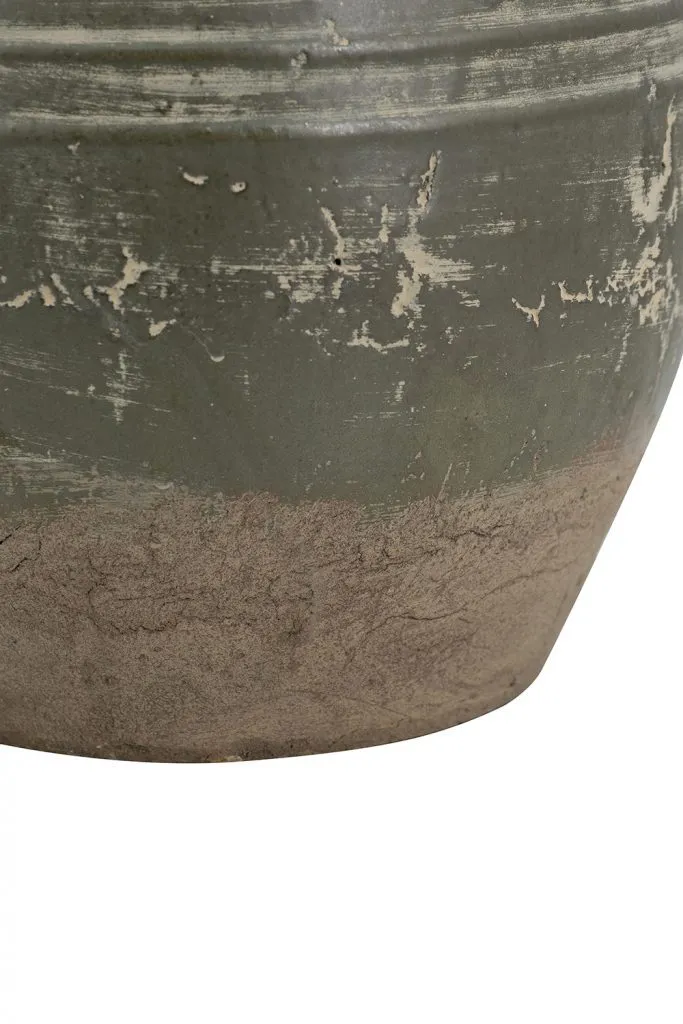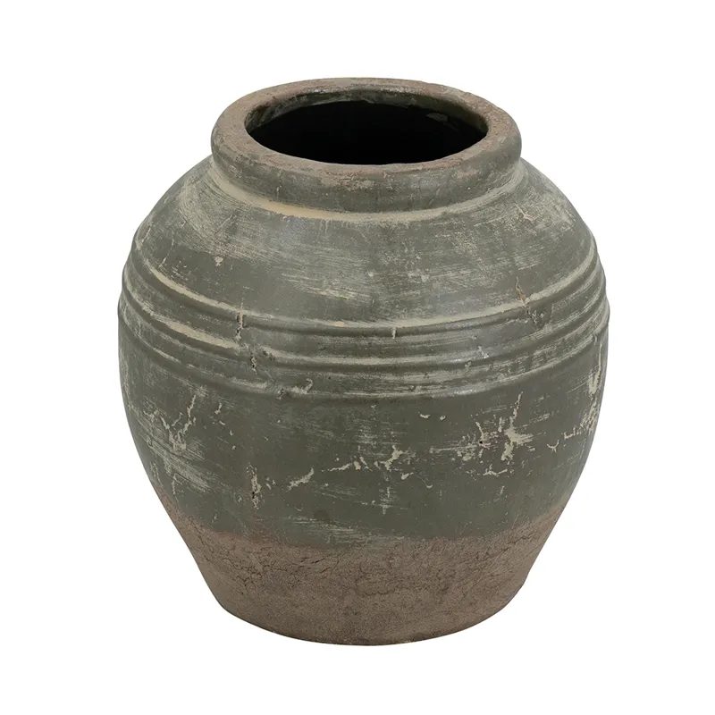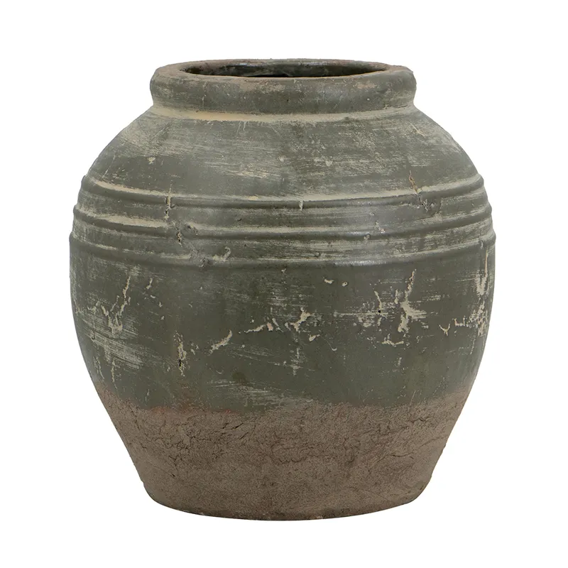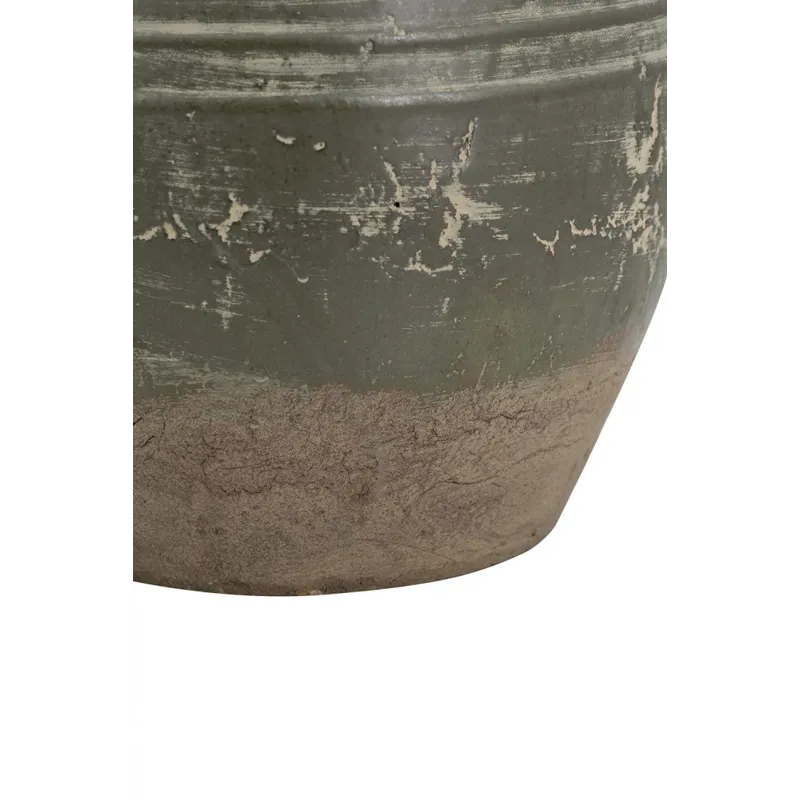 Drawing inspiration from the rugged beauty of ancient Tuscan pottery, this vase features a rounded body, an aged green finish, and a subtle ridged pattern. Whether displayed alone or paired with vibrant florals, it adds a burst of natural charm to your living room, entryway, bedroom, or office.