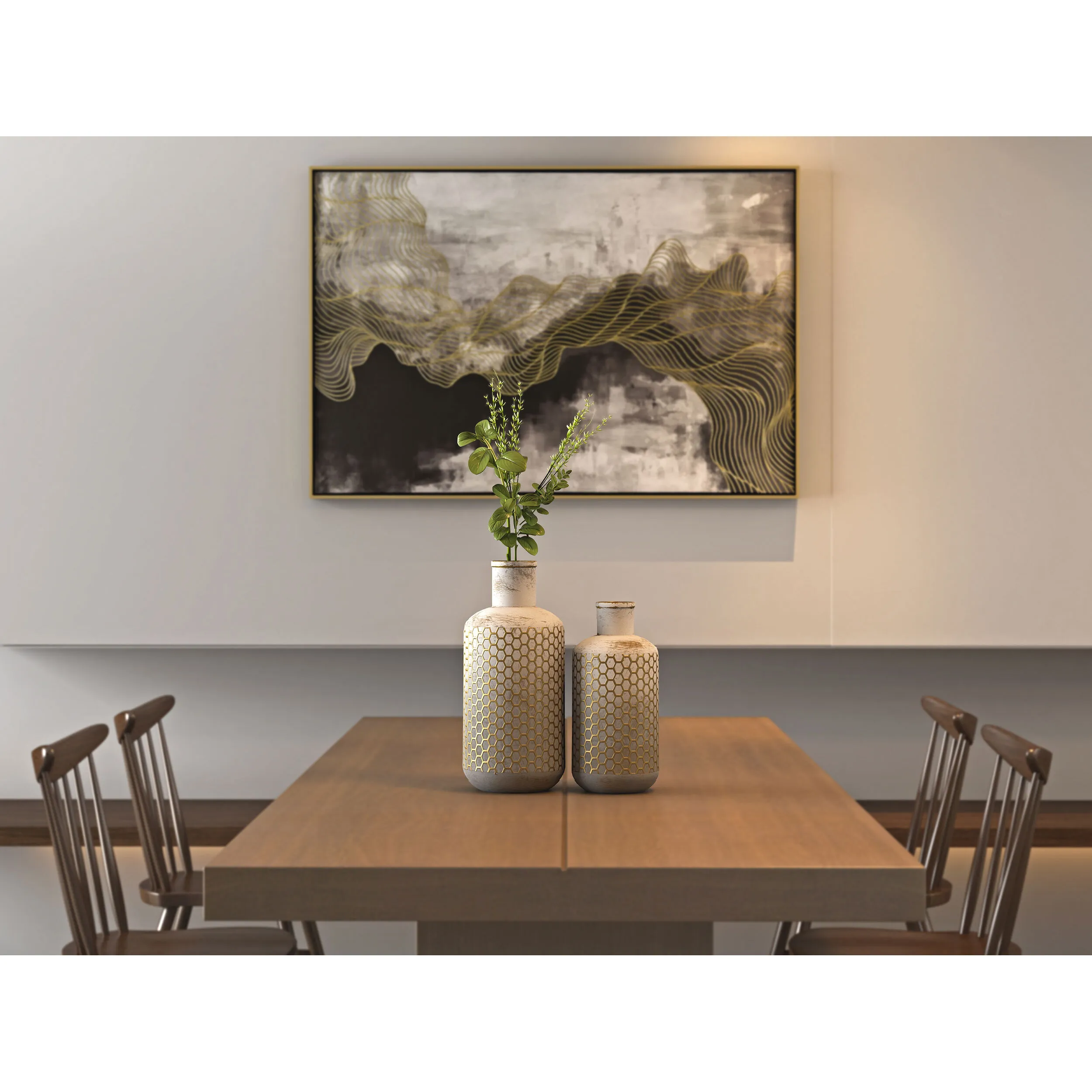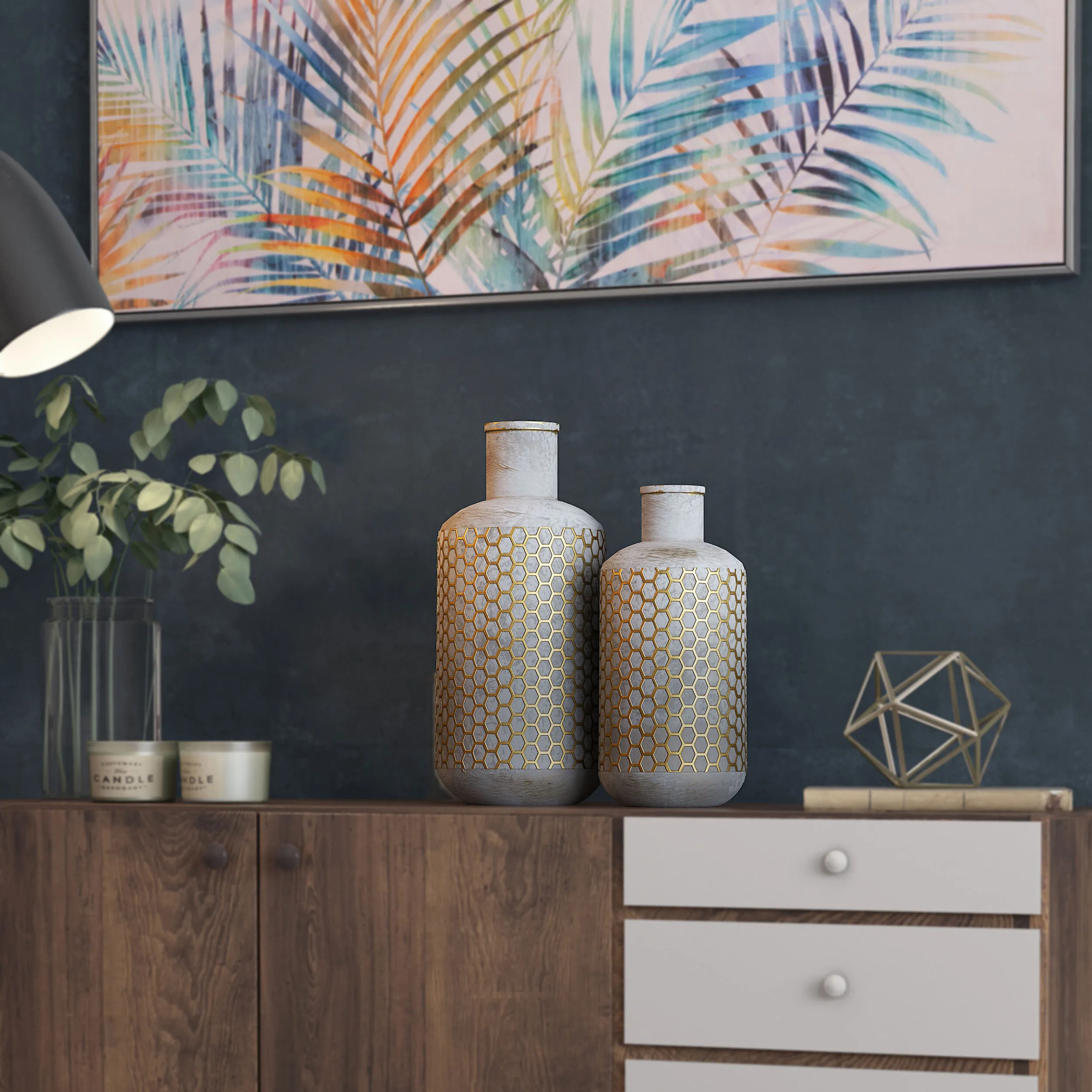 Crafted from metal, these white and gold vases fit the contemporary modern theme perfectly. With a unique texture throughout, these vases look great with or without flowers in them and add an impressive statement to your decor.