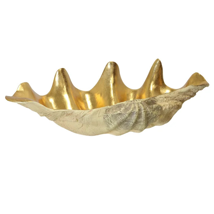 NATURAL & GOLD | Norman Wyatt Home | Cast Clam Bowl with Gold Leaf Finish Inside | 6in Ht. X 20in W.