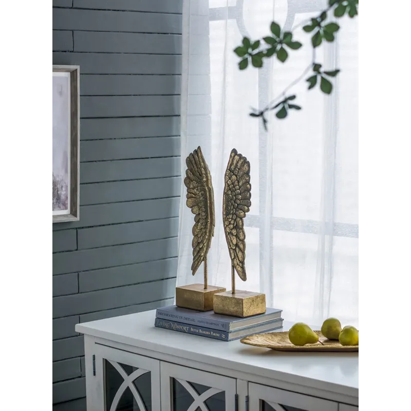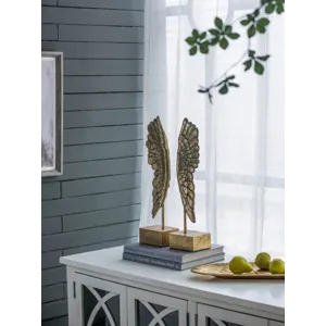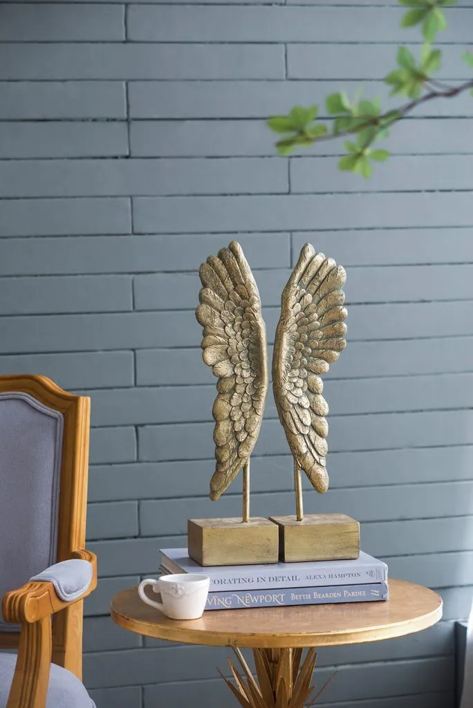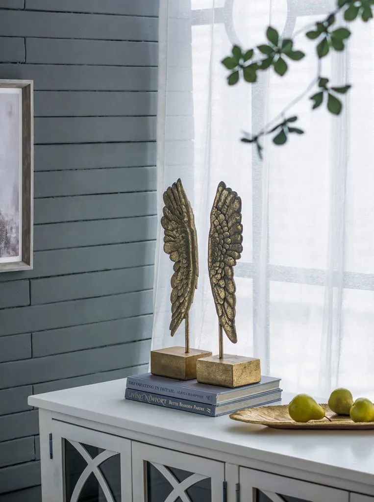 A handsome addition to any bookshelf,these matching wing bookends make an amazing accent for any room.With a gray and gold leaf finish,these feathered wings will diversify your bookcase with visually appealing flair and style.Its sophisticated,intricate design is sure to add an unexpected element to your home office,living room,or study.