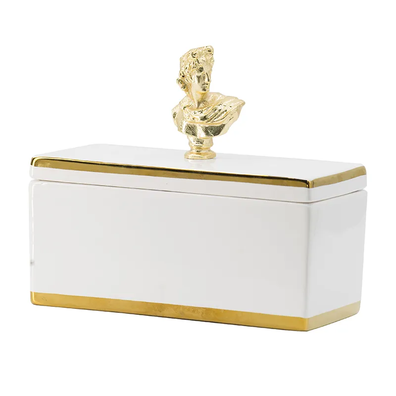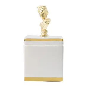 This elegant transitional canister features a sculptural bust handle and metallic accents to bring your vintage-inspired bedroom or living room decor to life. This canister features stark white ceramic construction that’s paired with metallic finished aluminum touches, most notably an inspired neoclassical bust handle. Ample storage for your jewelry, trinkets or remotes