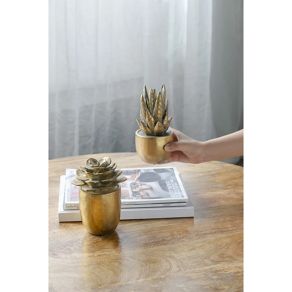 Featuring the dynamic beauty of a succulent and a gleaming gold finish, this chic figurine makes a glamorous accent in any home or office. Brighten a sophisticated office, luxurious master bathroom, or contemporary living room with this cheerful piece. With its lavish finish and versatile size, this piece fits easily on a bookshelf, desk, or counter where its lively, natural beauty can shine.