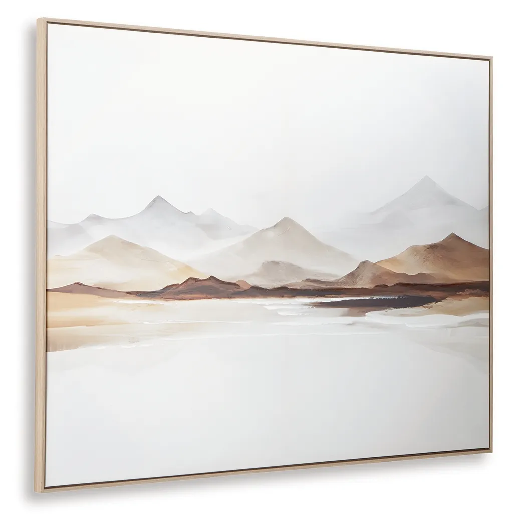 Bring the majesty of the mountains indoors with this landscape. An open expanse in the foreground contrasts and draws the eye to the rolling hills. The wall art takes a minimalistic approach to natural beauty, with neutral tones that make an impact in contemporary spaces.