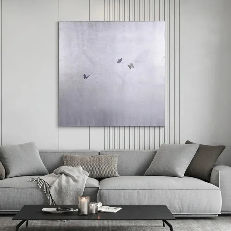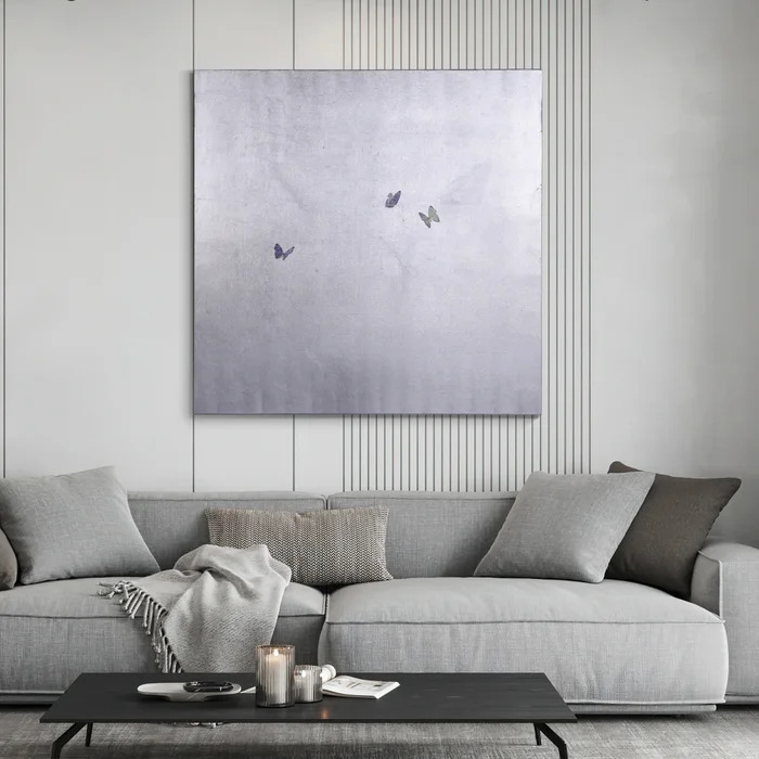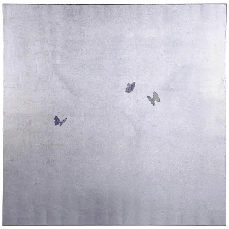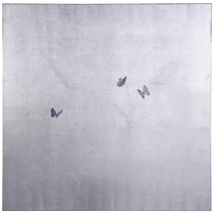 DANN FOLEY LIFESTYLE | SILVER BUTTERFLIES | TEXTURED HAND PAINTED ABSTRACT CANVAS | 48IN X 48IN