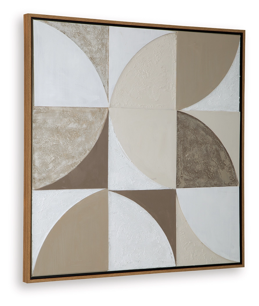 Make a bold geometric statement with this wall art. Its hand painted design balances curves and angles in soothing neutral tones, creating a captivating sense of movement and depth. Expertly finished with a light brown frame and four-way hanging versatility, this contemporary piece brings gallery-worthy style to your home.