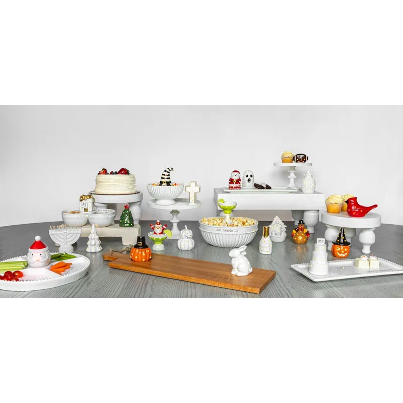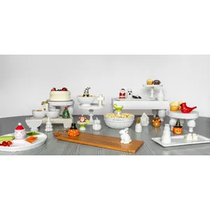 Cut-out ceramic sitter features LED interior lights. Batteries included.