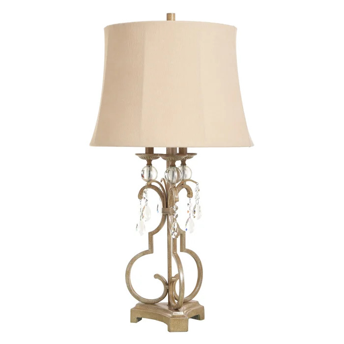 Georgian Silver | Traditional Iron and Acrylic Table Lamp | 150W | 3-Way | Softback Bell Shade