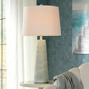 SKY BLUE WASHED CONE | Ribbed Table Lamp Base | Polyresin | 31in ht | 150 Watts