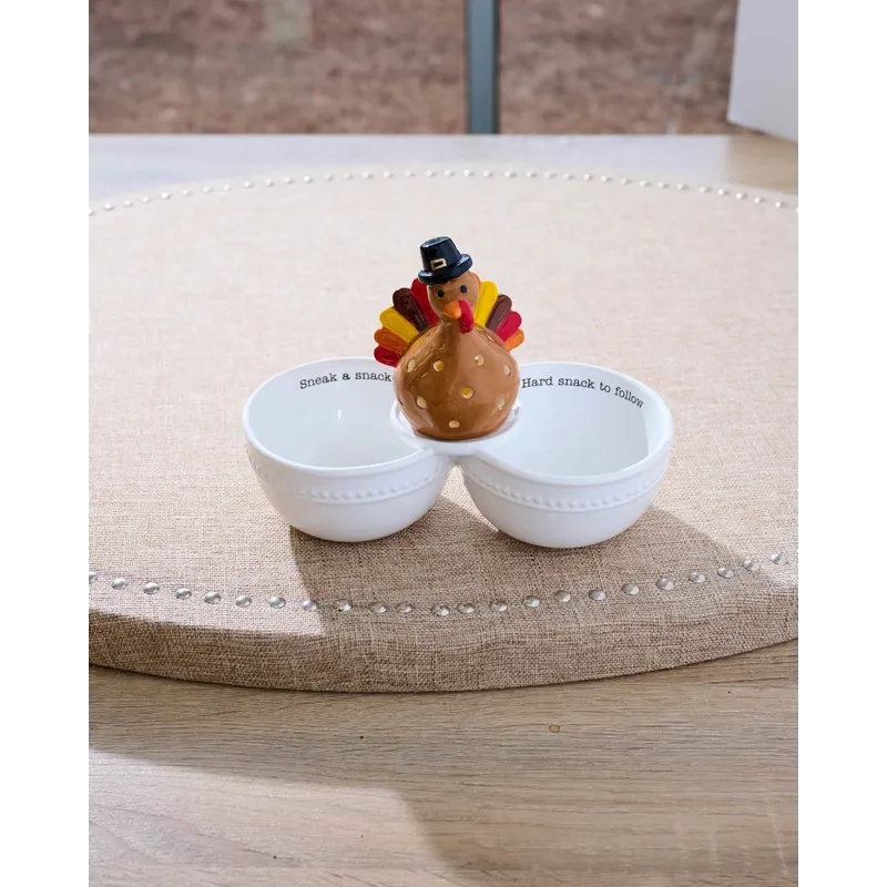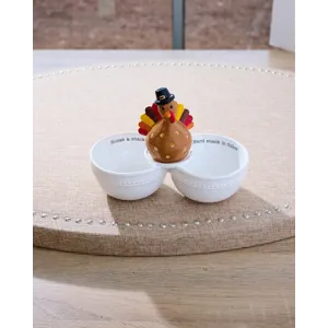 Ceramic turkey decorative sitter with LED light-up feature. Batteries included.