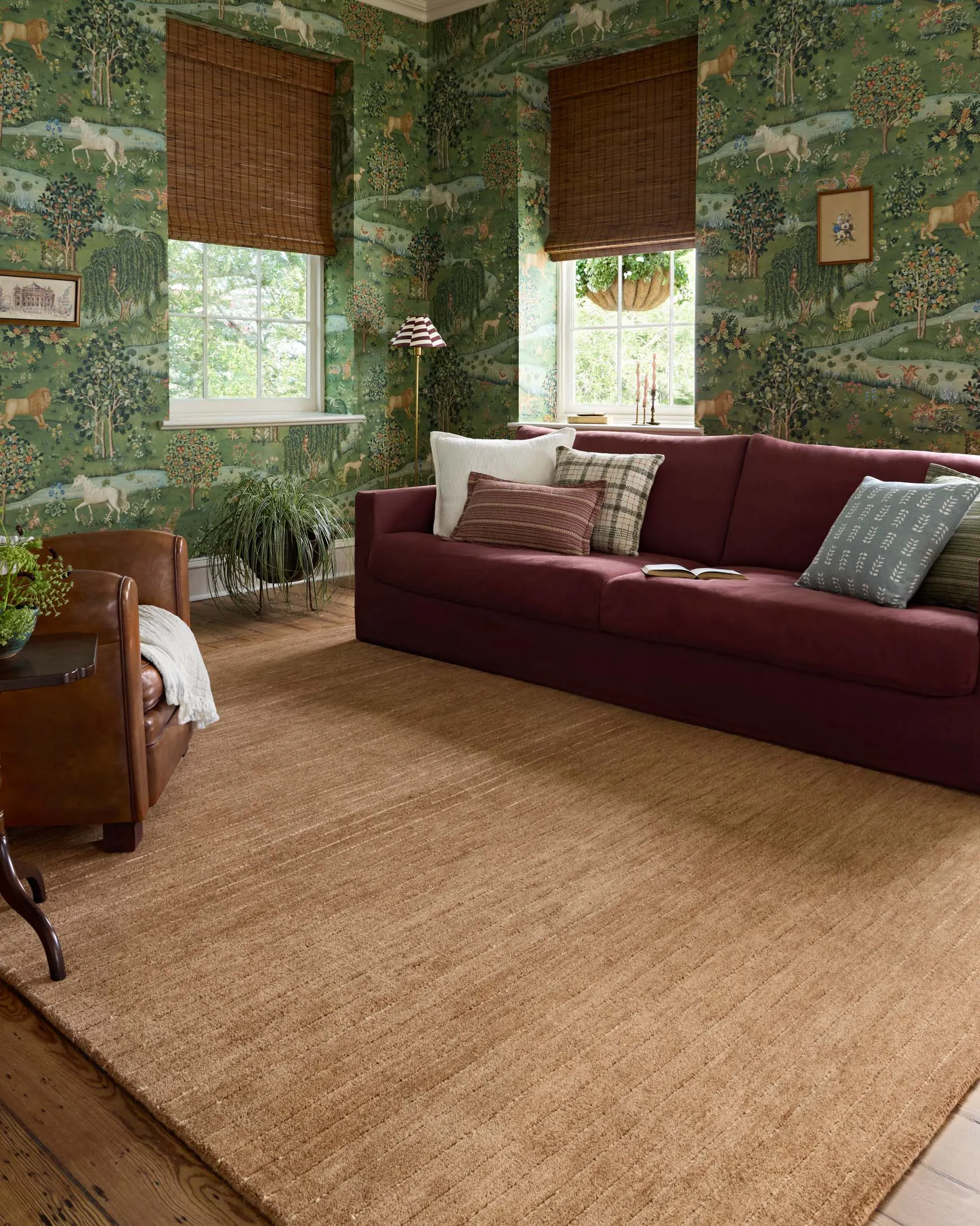 The Henry Collection from Chris Loves Julia x Loloi is a hand-tufted area rug that adds a touch of personality to a solid-colored design that can easily pair with other patterns in the room. These designs feature tufted stripes for subtle contrast and depth. The rugs wool pile is thick and satisfying to walk on, with gently nuanced color variation. This collection is hand-tufted of 100% wool in India and Goodweave-certified, ensuring our commitment to ethical production and the support of weavers communities. Some shedding is expected and a natural characteristic of wool rugs. We recommend vacuuming frequently without a beater bar.