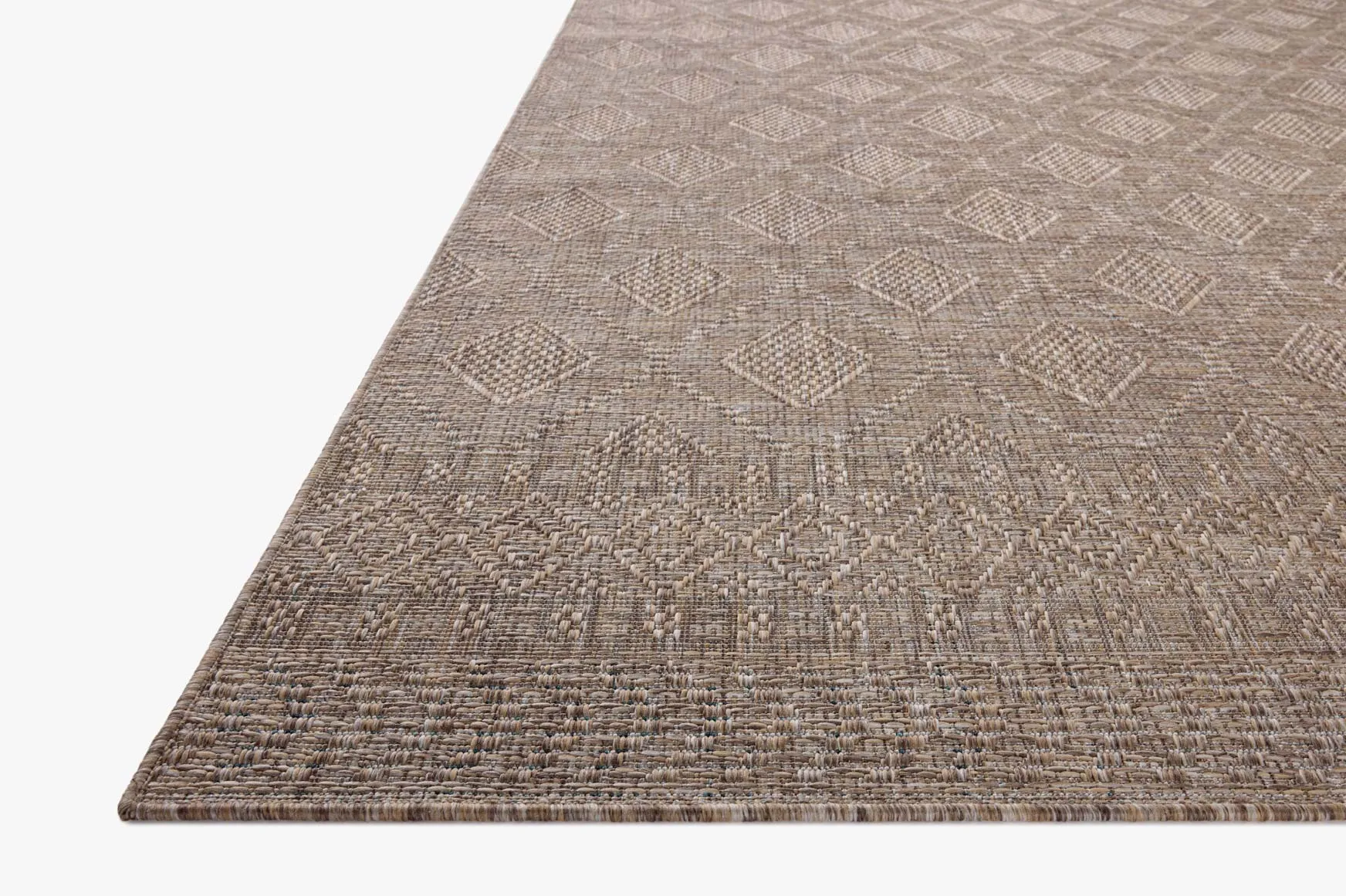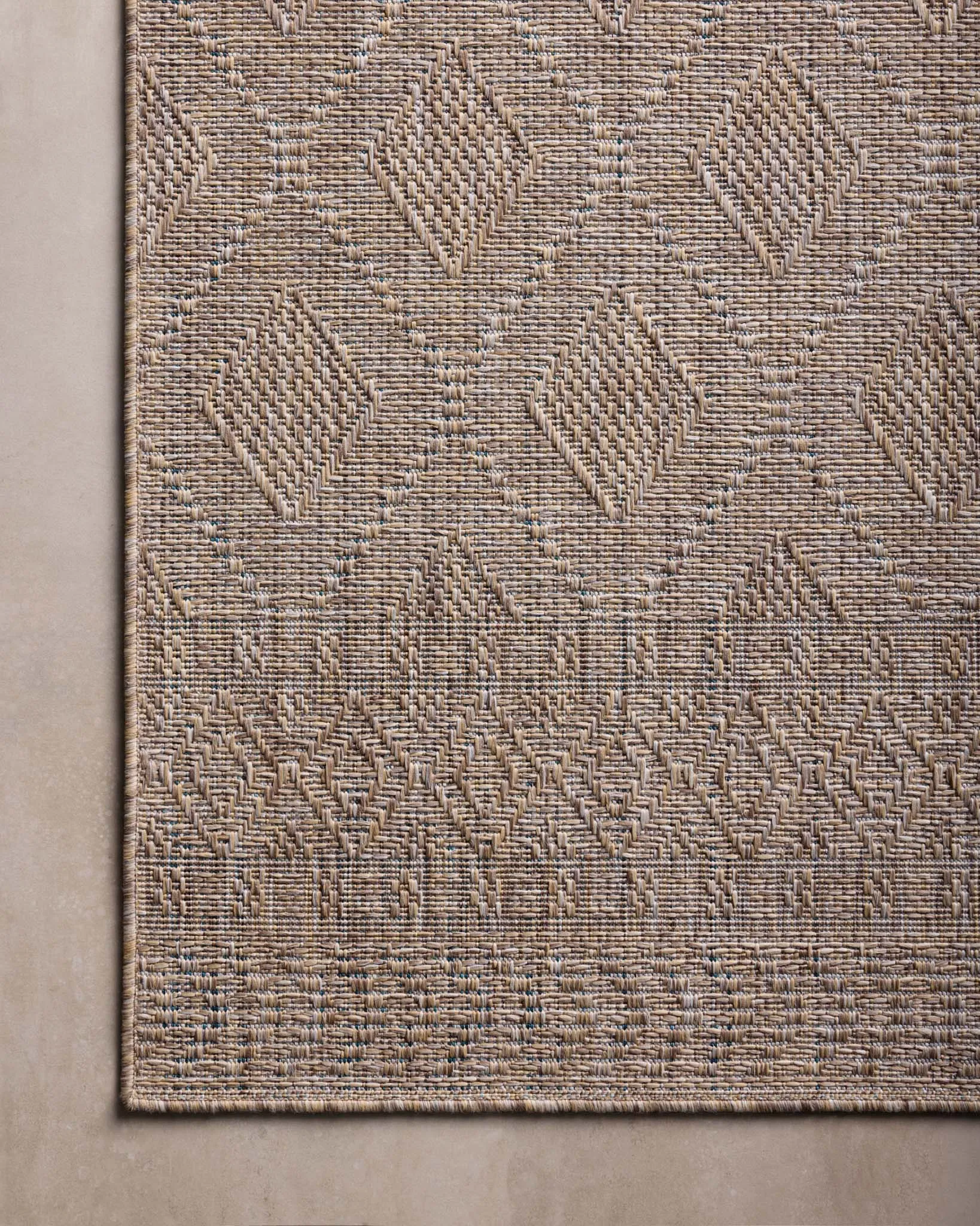 Inspired by the scenic mountain town in California, the Topanga Collection is an indoor/outdoor rug made of durable polypropylene that resembles natural fibers but is much more ready for sun, rain, and high-traffic use. The rug's modern construction also makes it easy to clean (just hose off and air dry), whether it's styled in a dining room, mudroom, or backyard patio.Classic geometric motifs bring a subtle pop of pattern to this sophisticated, neutral design by the celebrated interior designer Amber Lewis, made in collaboration with Loloi. This collection is OEKO-TEX certified, ensuring its materials don't contain harmful substances.