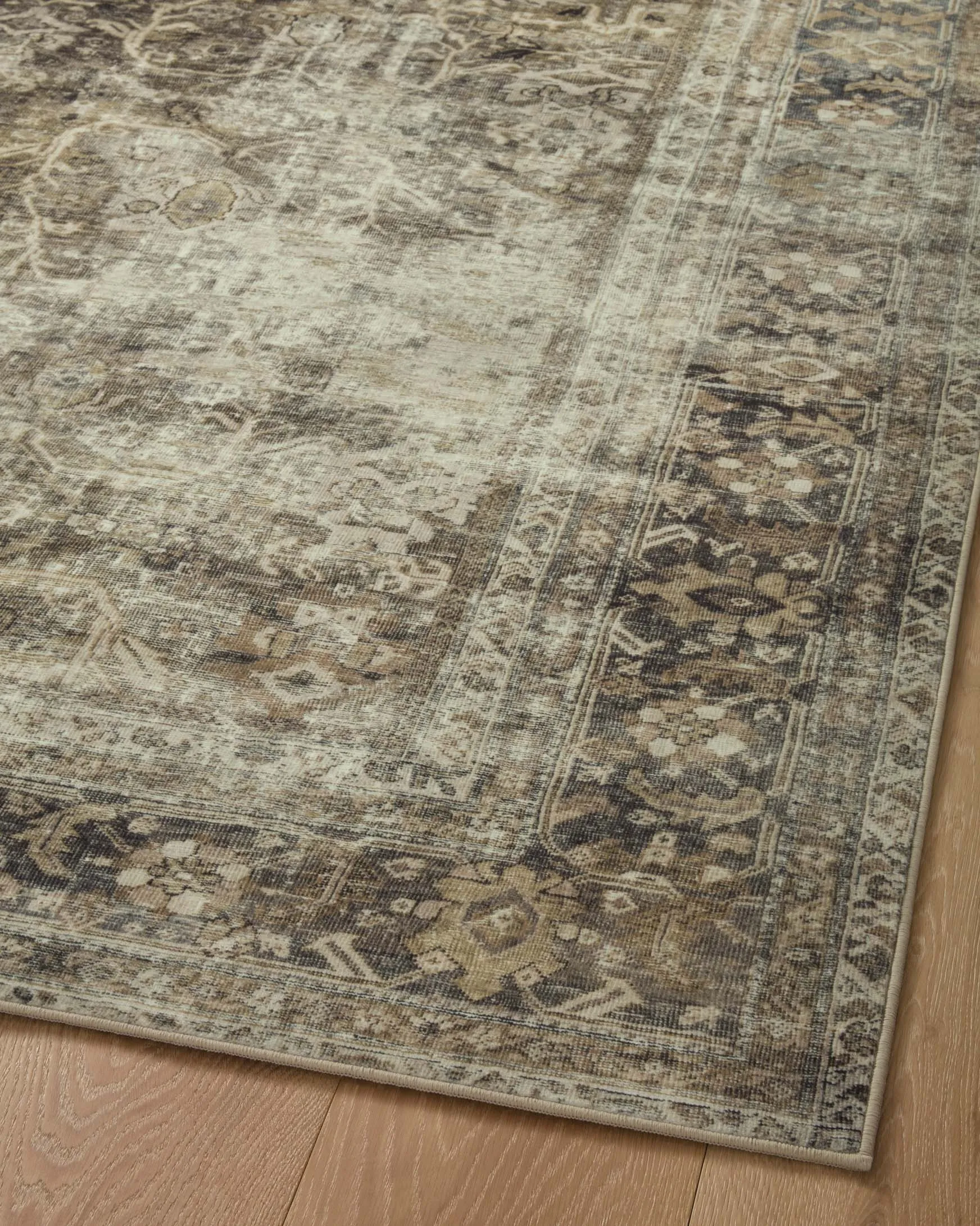 The Sinclair Collection for Magnolia Home by Joanna Gaines x Loloi is power-loomed of polyester, including 58% Global Recycling Standard (GRS) certified recycled polyester (made from recycled plastic bottles), certified by Control Union 1171944. Sinclair area rugs have incredible softness and durability comparable to classic power-loomed rugs, while also reducing waste in their production. This collection is also machine-washable, making it an ideal rug in high-traffic living rooms, hallways, entryways, and children’s rooms. The design features antique motifs with intricate details and slight distressing, creating a sophisticated, storied feel.