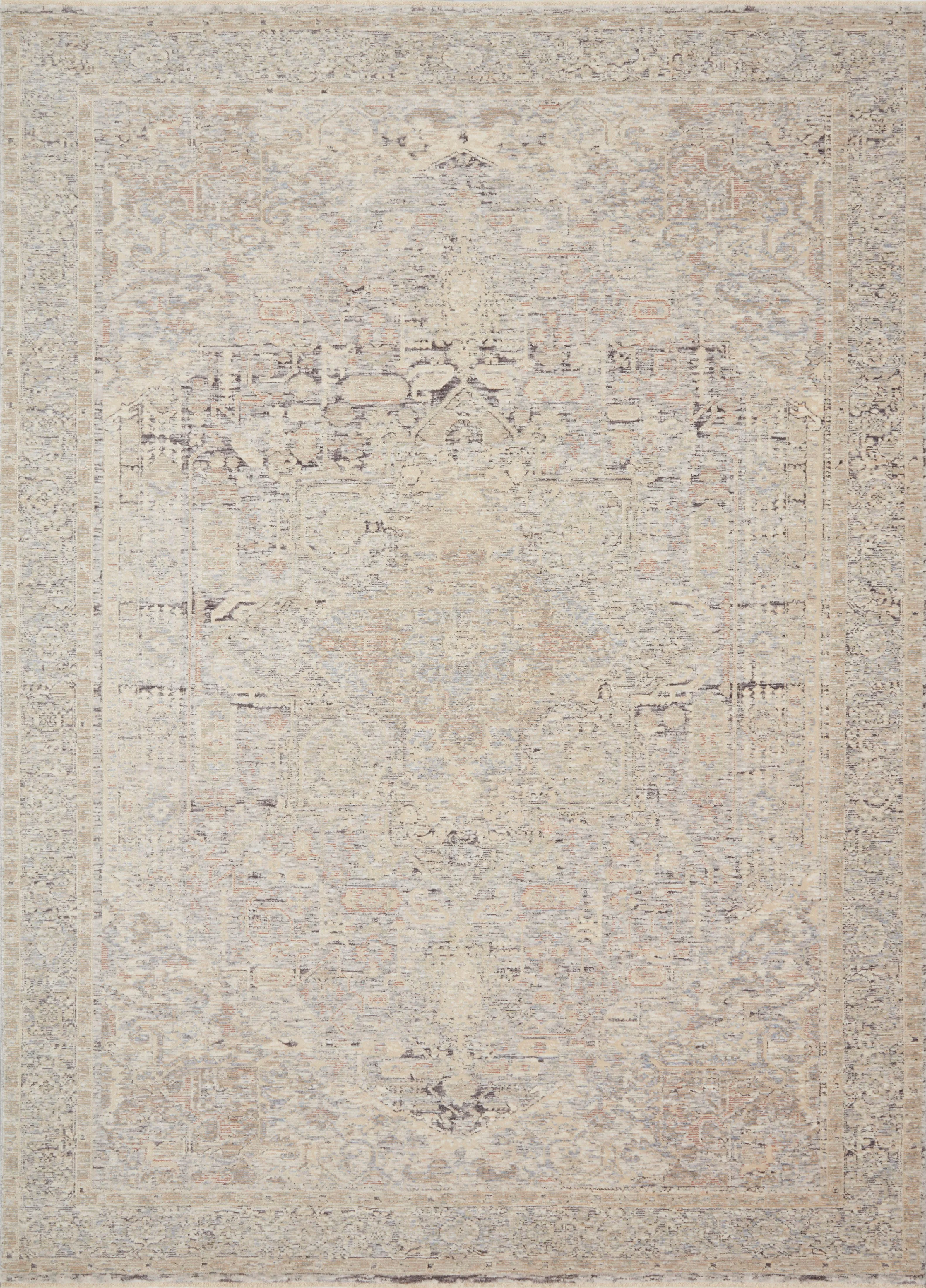 Power-loomed of polyester and viscose in Turkey, the Faye Collection displays a soft color palette and a mix of distressed and traditional-inspired motifs.