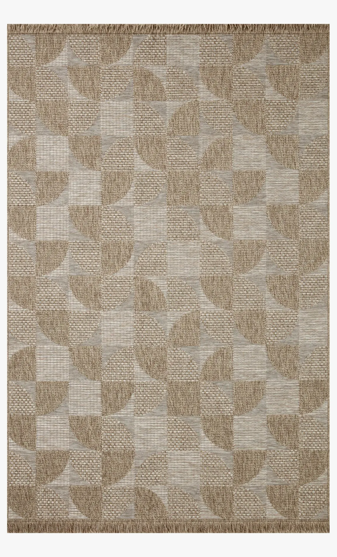Made for sunny days ahead, the Dawn Collection is an indoor/outdoor rug that looks like a woven sisal rug but is power-loomed of 100% polypropylene, which makes it water- and mildew-resistant (so it's ready for rainy days ahead, too). Available in modern graphic patterns in tonal beige neutrals, Dawn has a short edge fringe that adds a playful and elevated feel to a rug that can handle a lot of foot (or paw) traffic whether outside on a patio or in a busy mudroom. Rinse off with a hose when needed.