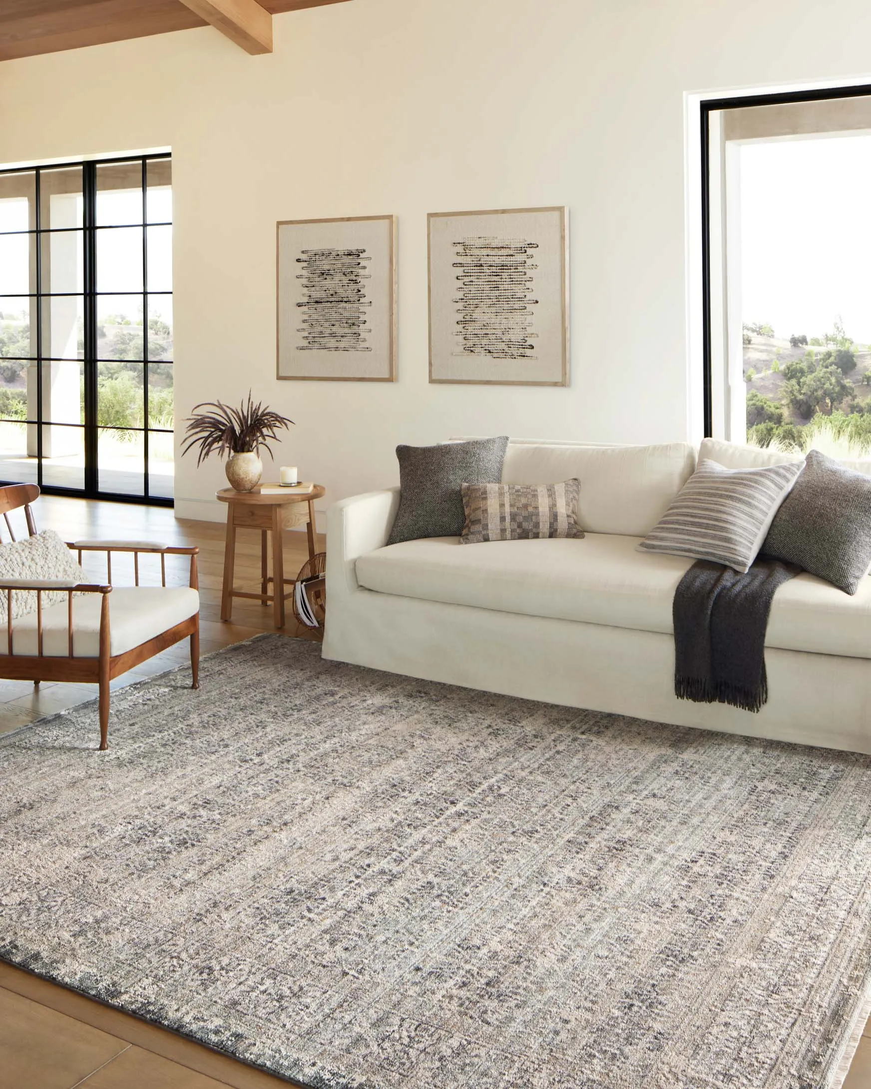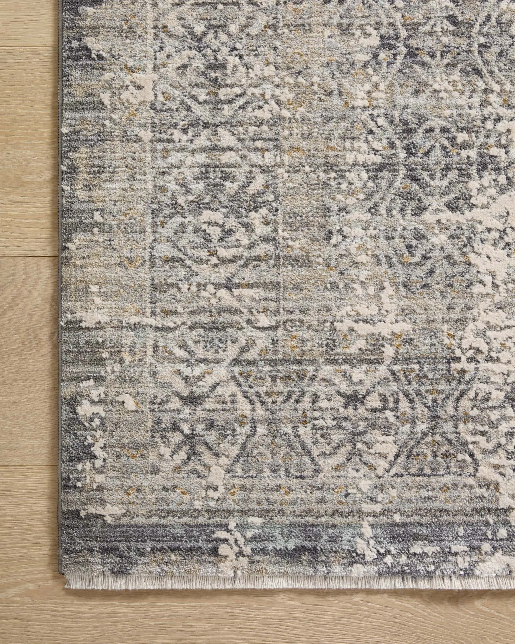 Area rugs in the Alie Collection have an elevated antique look and plush, modern feel. The rug’s underlying traditional motif is overlaid with a slightly higher pile that creates a softening effect like early morning fog. The Alie Collection for Amber Lewis × Loloi is power-loomed in Turkey with durability for high-traffic rooms in mind. These rugs also carry the Oeko-Tex® label, ensuring their materials don't contain harmful substances.