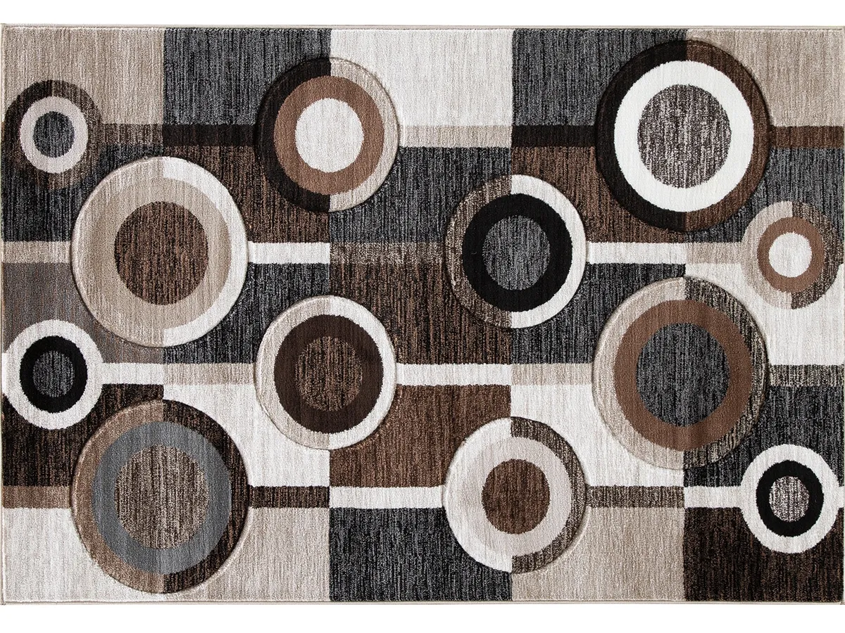 Talk about bringing modern pop to a space. With its multilayered circular design and pleasing palette of black, brown and cream tones, this area rug is decidedly bold without coming on too strong.