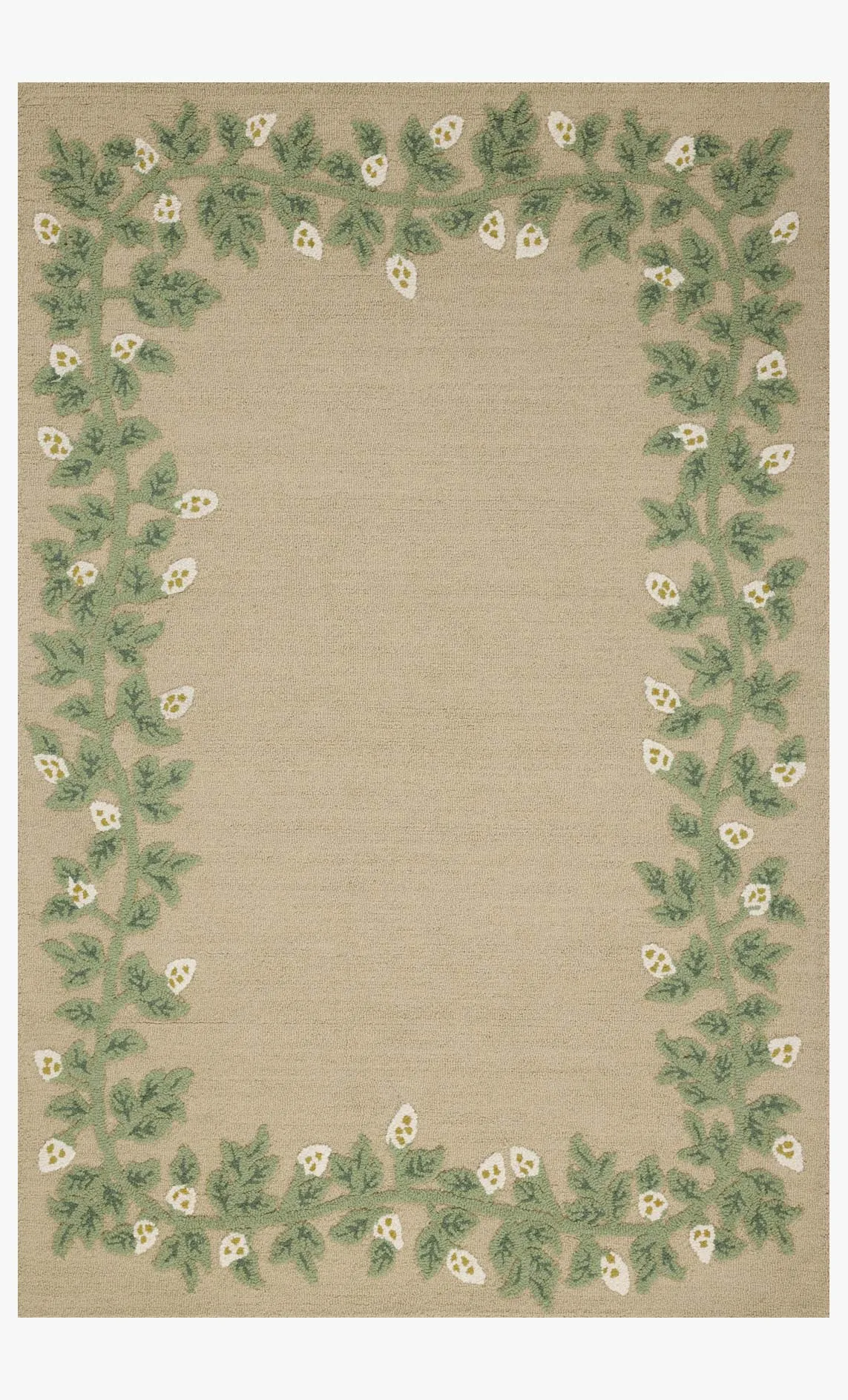 The Highgrove Collection is a patterned area rug inspired by the English countryside from Rifle Paper Co. x Loloi. The rugs design is filled with timeless roses, flowering vines, and fluttering butterflies, beautifully crafted in a palette designed to add rich, sophisticated color to your home decor. This collection is hand-tufted of wool in India and Goodweave-certified, ensuring our commitment to ethical production and the support of weavers communities. Some shedding is expected and a natural characteristic of wool rugs, we recommend vacuuming frequently without a beater bar.