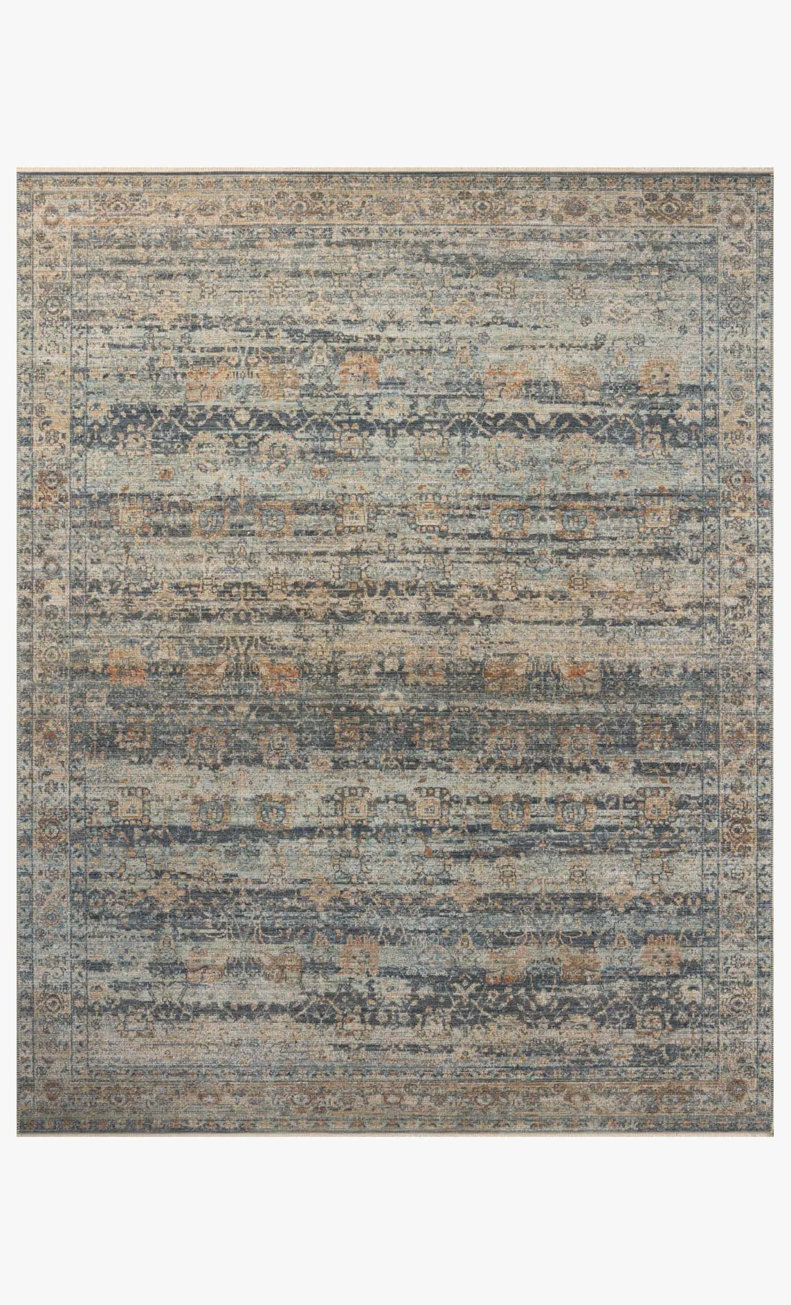 Heritage is Loloi's best collection yet. Inspired by Amir Loloi's favorite vintage rugs, the collection recreates a vintage aesthetic and variable-pile texture using a new craft process that was invented specifically for this rug, a process that took over two years to complete. Motifs in Heritage are woven with individual threads to create the intricate design, including white cotton threads that mimic a vintage rug's authentic wear patterns. The result is a stunning area rug with an uncanny resemblance to an antique textile. Heritage is made in Egypt of polypropylene, polyester, and wool for thicker, variable texture and soft blended pile. This collection is OEKO-TEX certified, ensuring its materials don't contain harmful substances. Patent pending.