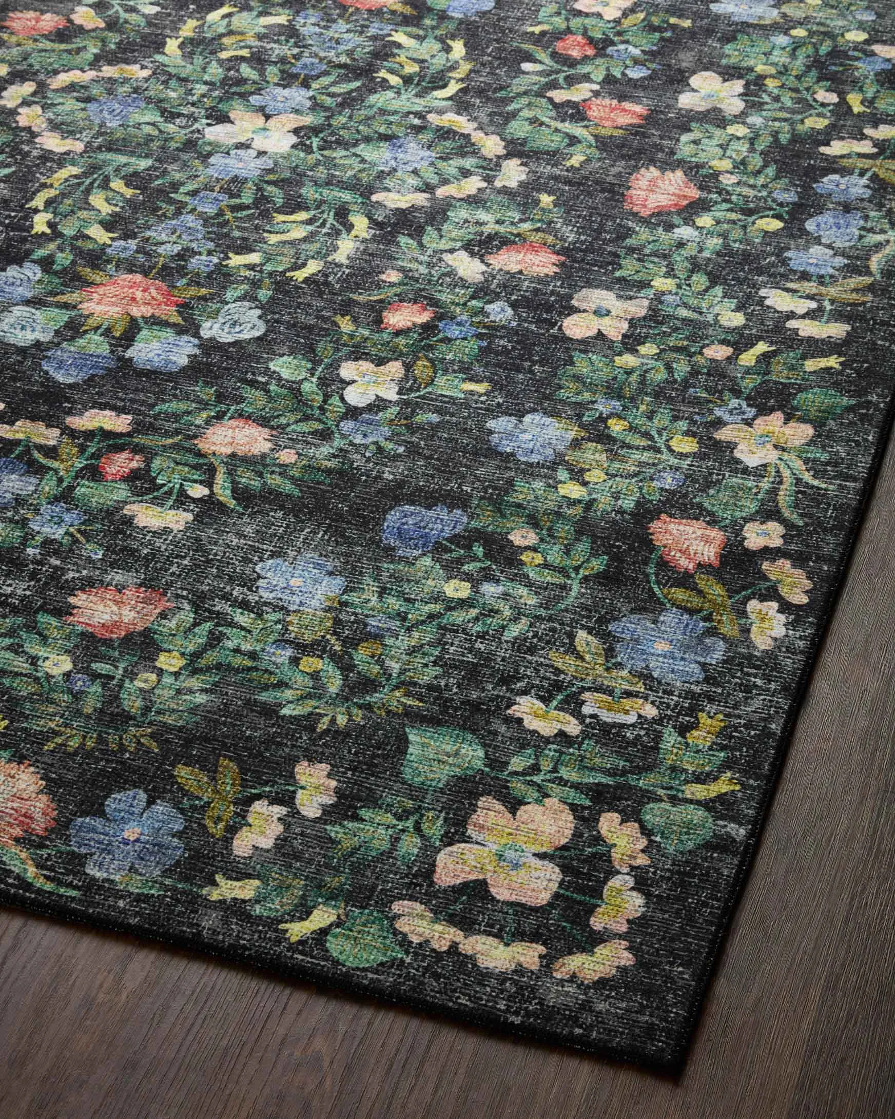 Bold and bright, the Palais Collection for Rifle Paper Co. x Loloi grounds any space with whimsical motifs and playful colors inspired by Anna Bond’s illustrative artwork. Each piece is printed in China on a soft polyester base, ensuring comfort underfoot, colorfastness, and stain-resistance.