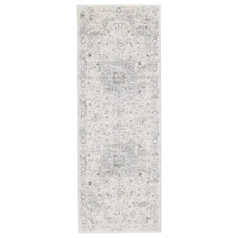 Inspired by both classic motifs and contemporary art, the Solace collection features transitional designs in soft, calming colorways. The Ellignton area rug showcases a center medallion with elegant floral details in serene, relaxed hues of gray, ivory, and subtle hints of gold. Made to withstand heavy foot traffic and lived-in spaces, this power-loomed polypropylene rug boasts texture-rich high-low pile.