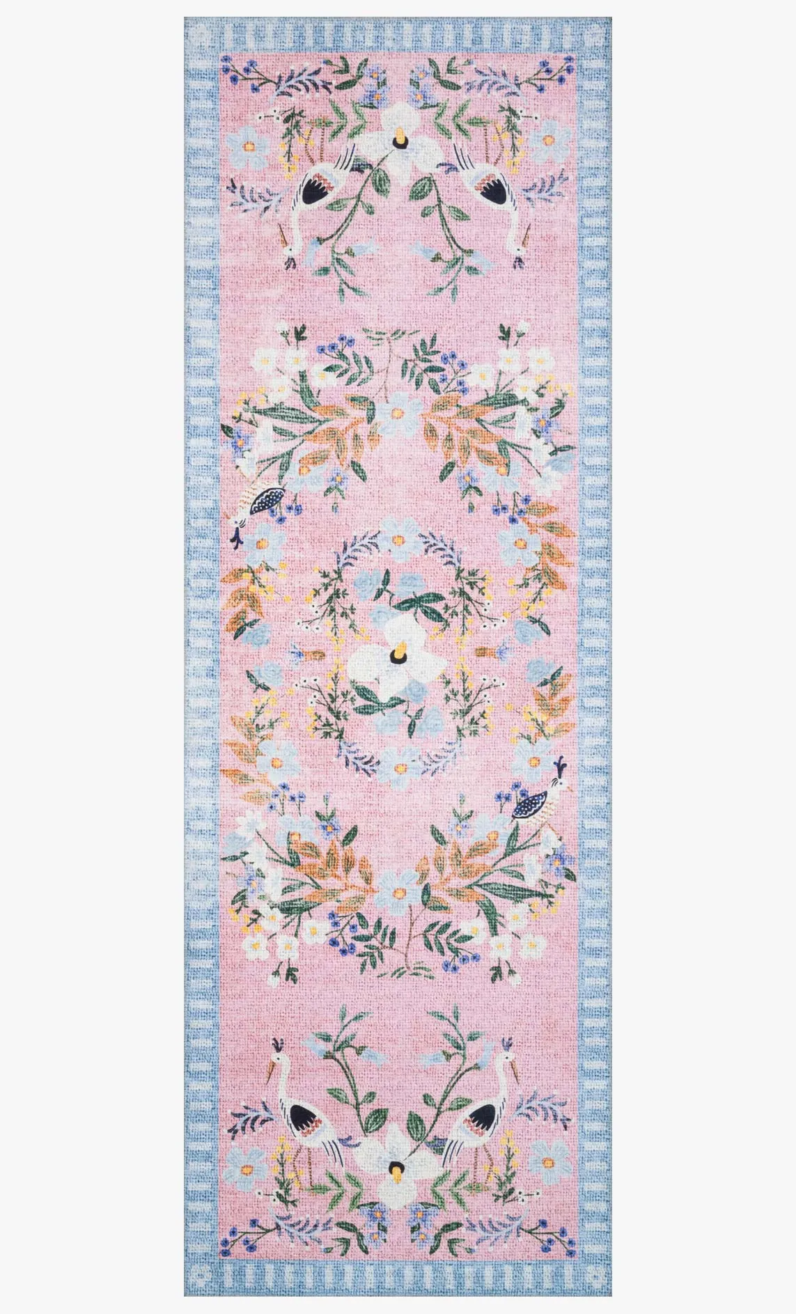 Bold and bright, the Palais Collection for Rifle Paper Co. x Loloi grounds any space with whimsical motifs and playful colors inspired by Anna Bond’s illustrative artwork. Each piece is printed in China on a soft polyester base, ensuring comfort underfoot, colorfastness, and stain-resistance.