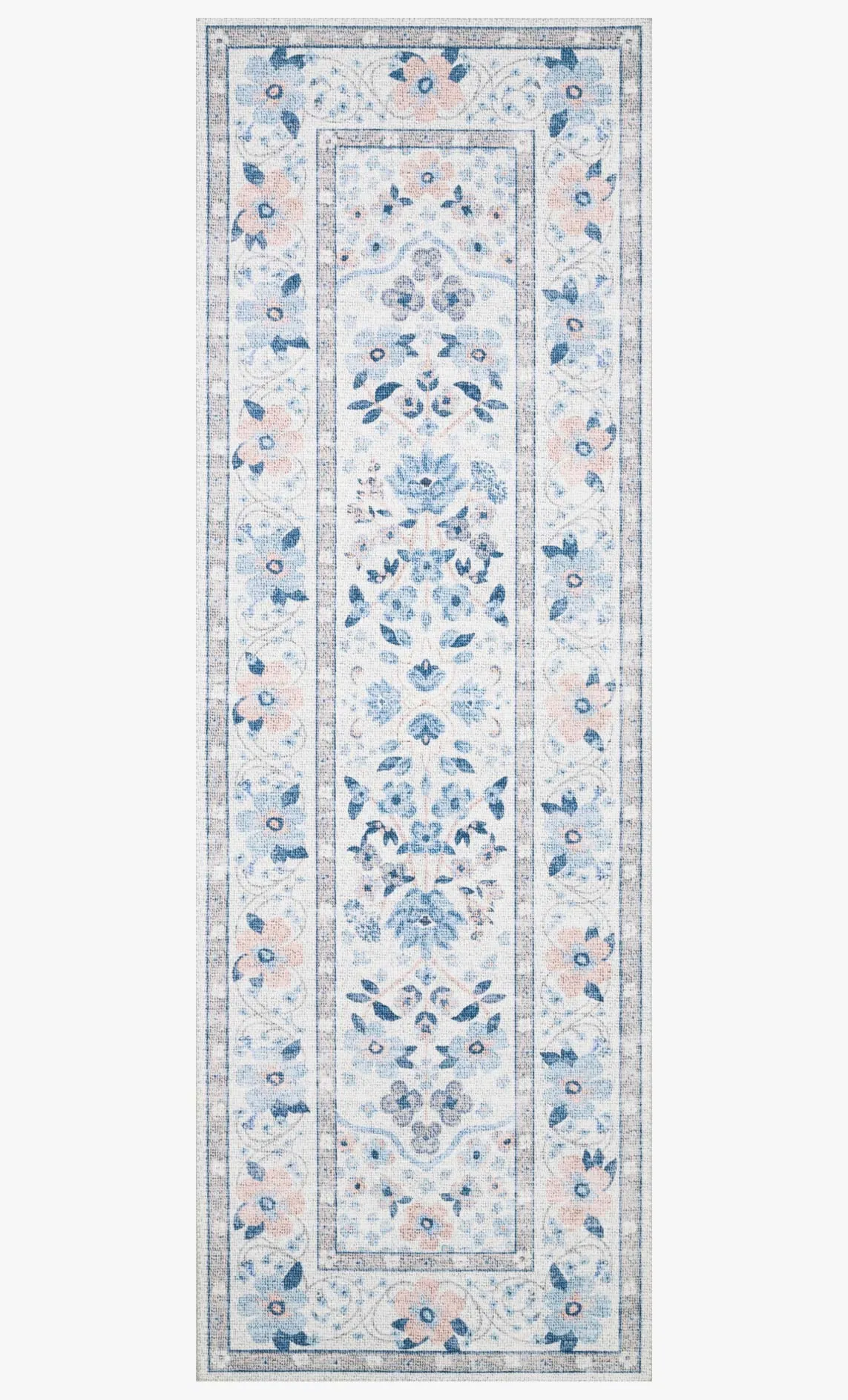 Bold and bright, the Palais Collection for Rifle Paper Co. x Loloi grounds any space with whimsical motifs and playful colors inspired by Anna Bond’s illustrative artwork. Each piece is printed in China on a soft polyester base, ensuring comfort underfoot, colorfastness, and stain-resistance.