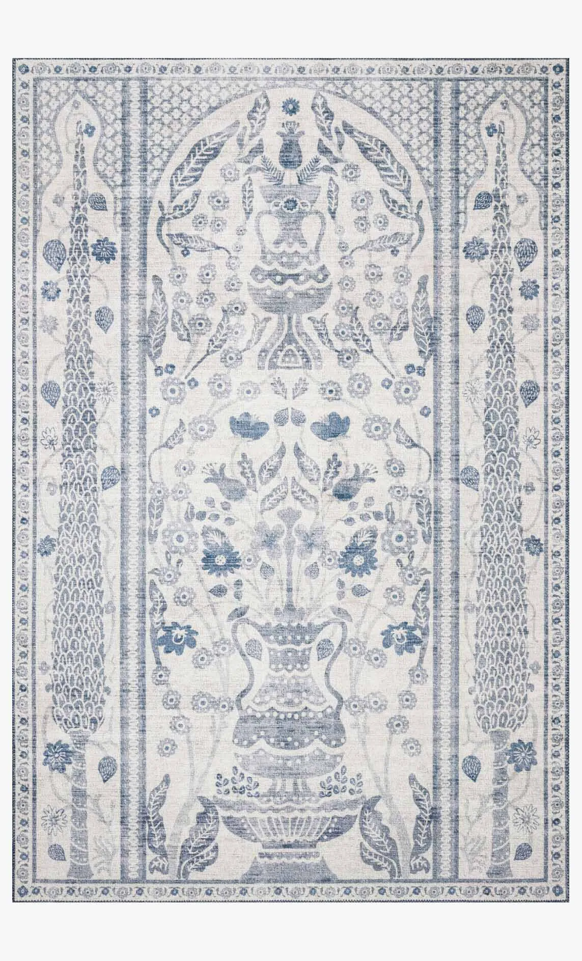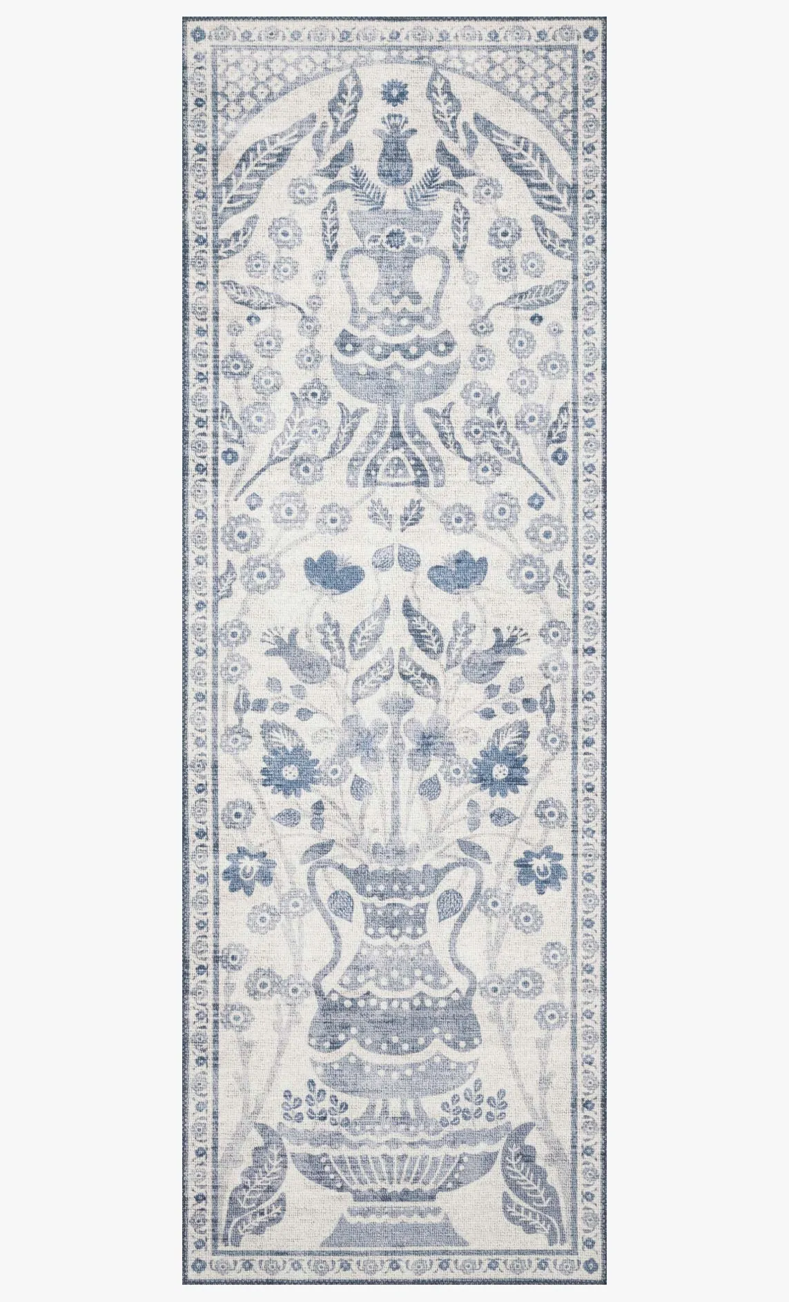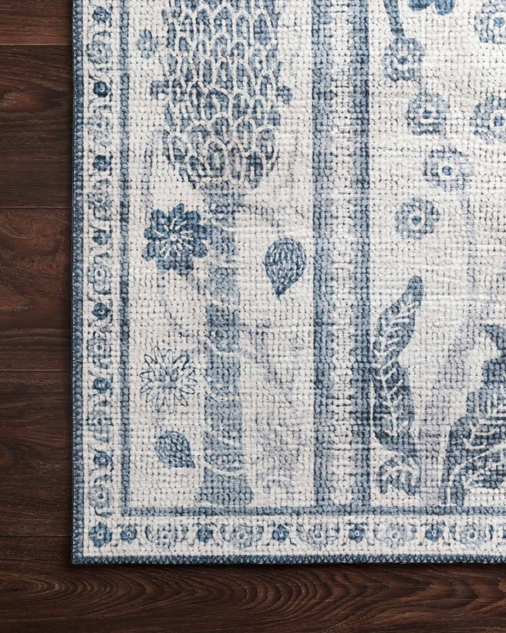 Bold and bright, the Palais Collection for Rifle Paper Co. x Loloi grounds any space with whimsical motifs and playful colors inspired by Anna Bond’s illustrative artwork. Each piece is printed in China on a soft polyester base, ensuring comfort underfoot, colorfastness, and stain-resistance.