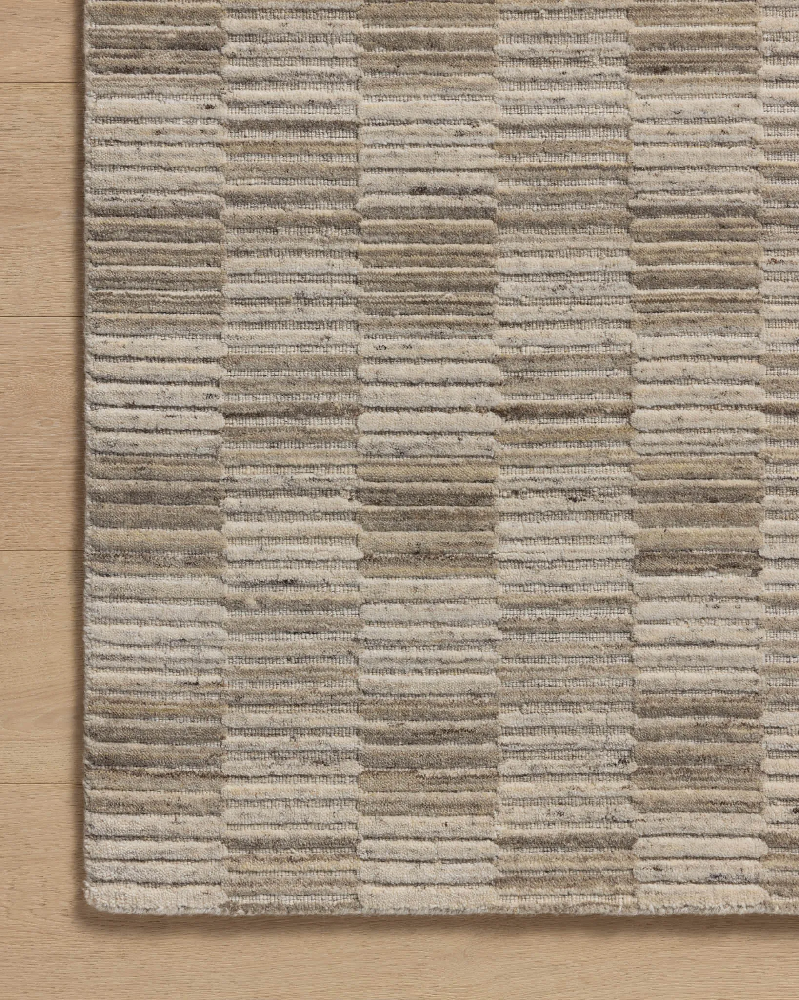 The Marlowe Collection by Amber Lewis x Loloi is a handmade area rug with a coastal-inspired gridded design in natural color palettes. The rugs muted pattern adds understated depth with a durable, thick pile. This collection is hand-loomed of wool in India and Goodweave-certified, ensuring our commitment to ethical production and the support of weavers communities.
