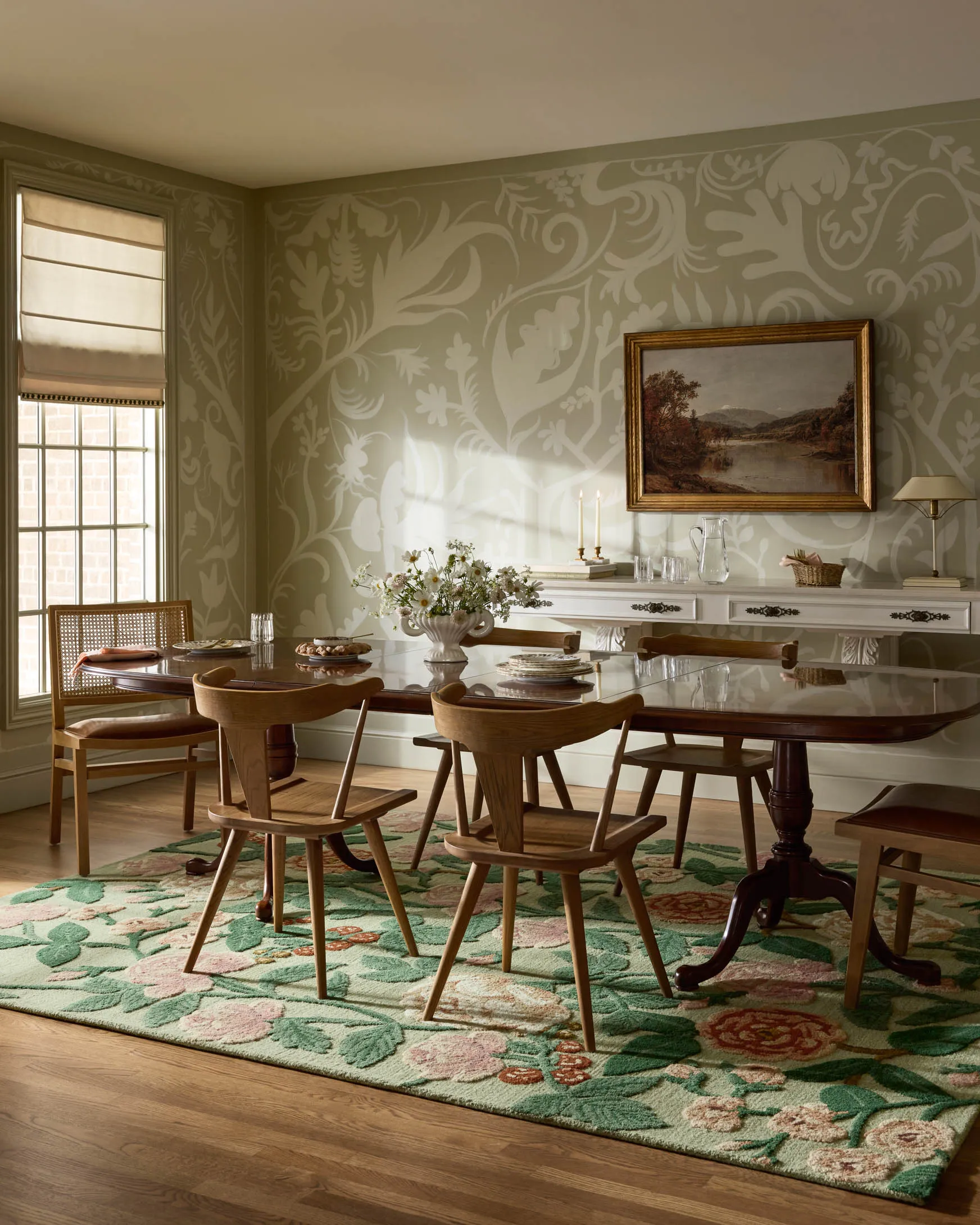 The Highgrove Collection is a patterned area rug inspired by the English countryside from Rifle Paper Co. x Loloi. The rugs design is filled with timeless roses, flowering vines, and fluttering butterflies, beautifully crafted in a palette designed to add rich, sophisticated color to your home decor. This collection is hand-tufted of wool in India and Goodweave-certified, ensuring our commitment to ethical production and the support of weavers communities. Some shedding is expected and a natural characteristic of wool rugs, we recommend vacuuming frequently without a beater bar.