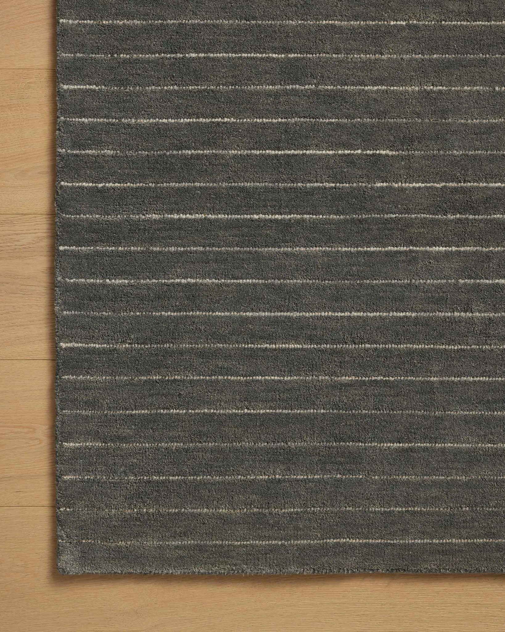 The Henry Collection from Chris Loves Julia x Loloi is a hand-tufted area rug that adds a touch of personality to a solid-colored design that can easily pair with other patterns in the room. These designs feature tufted stripes for subtle contrast and depth. The rugs wool pile is thick and satisfying to walk on, with gently nuanced color variation. This collection is hand-tufted of 100% wool in India and Goodweave-certified, ensuring our commitment to ethical production and the support of weavers communities. Some shedding is expected and a natural characteristic of wool rugs. We recommend vacuuming frequently without a beater bar.