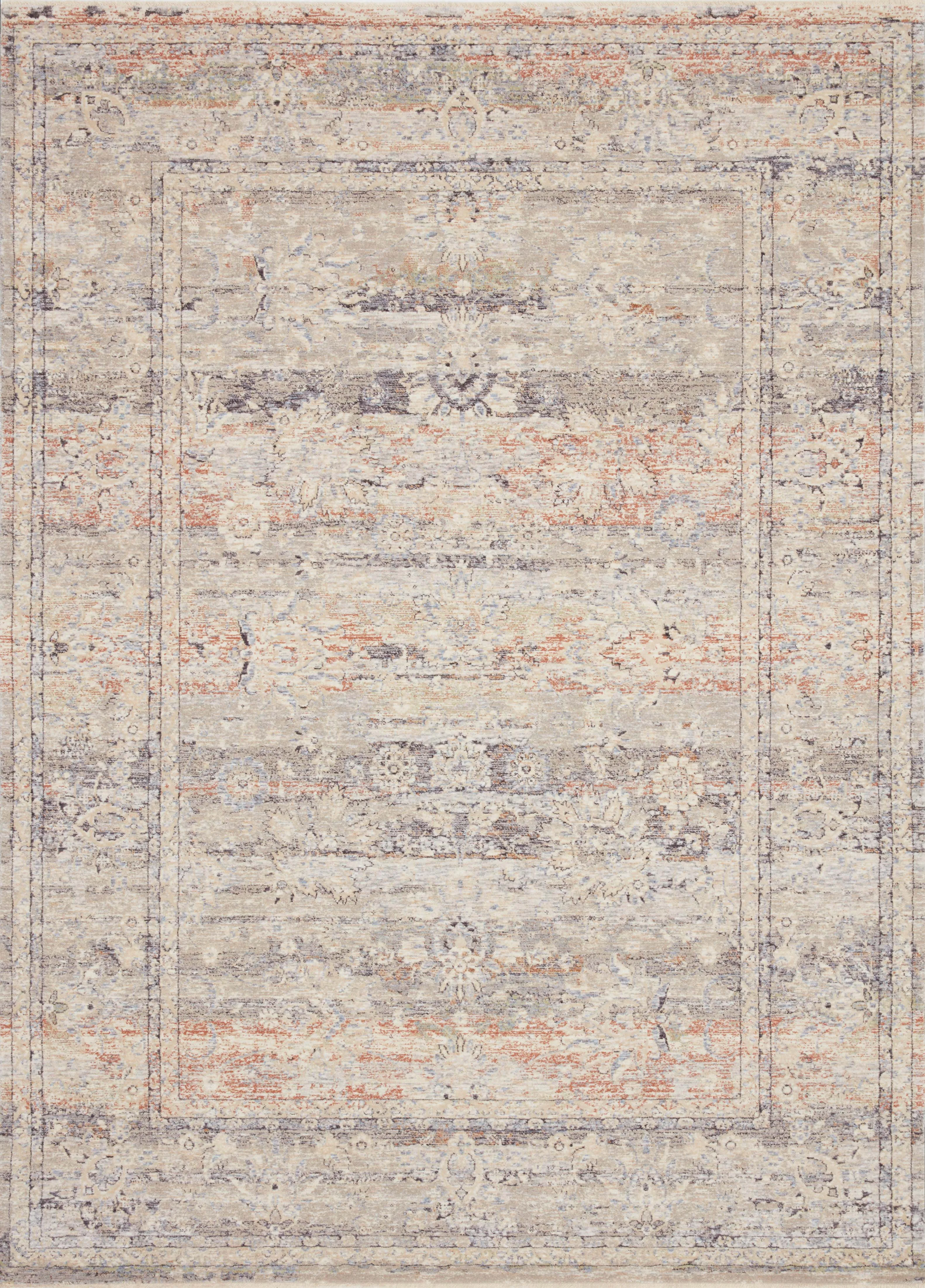 Power-loomed of polyester and viscose in Turkey, the Faye Collection displays a soft color palette and a mix of distressed and traditional-inspired motifs.