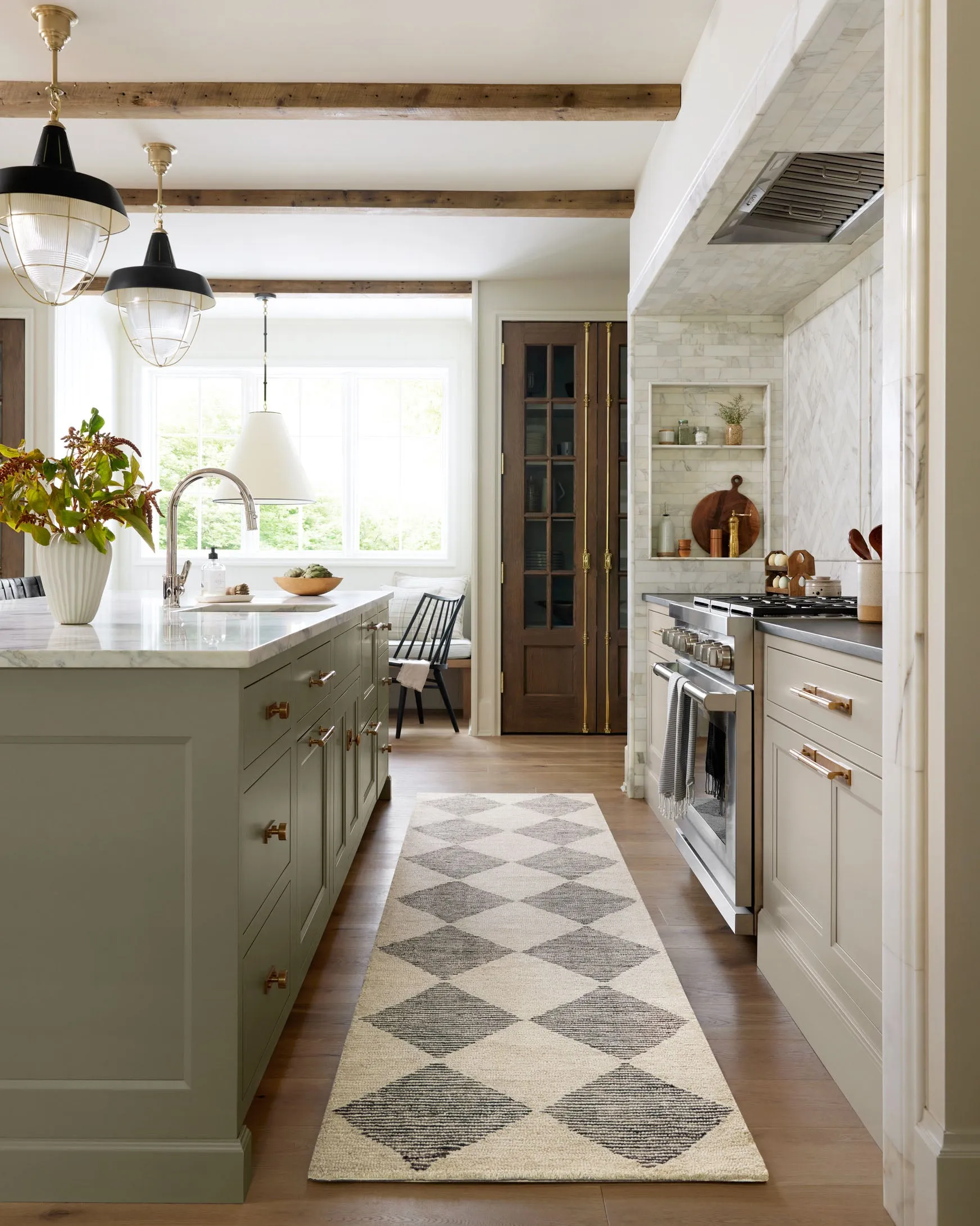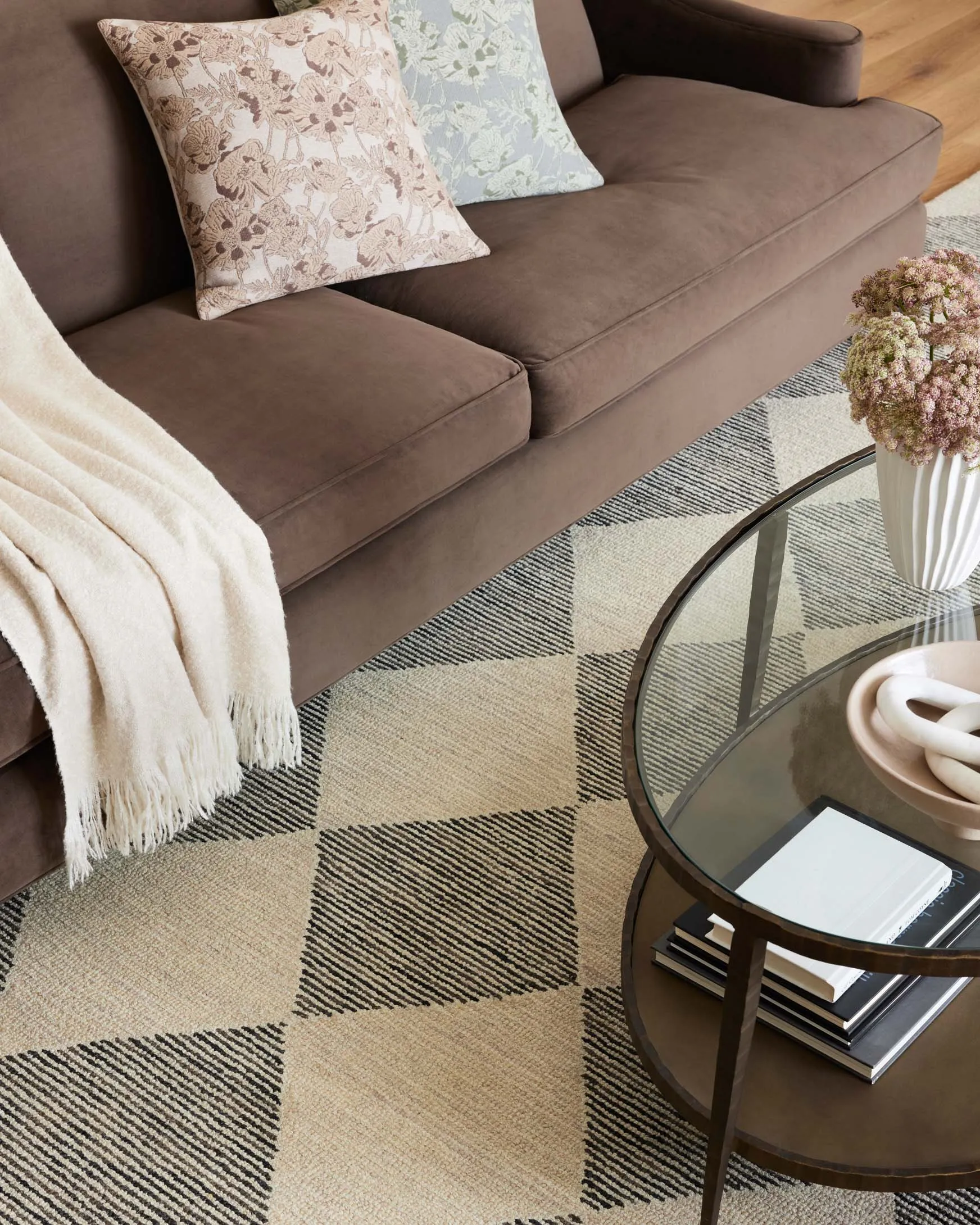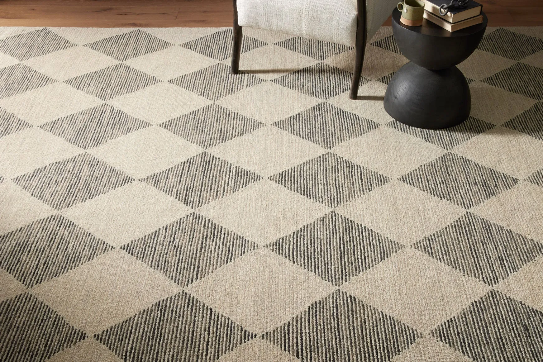 It’s no coincidence that the pattern of the Francis Collection for Chris Loves Julia x Loloi may remind you of tilework—it’s based on favorite flooring patterns of the couple, from tilework to parquet flooring. Hooked of 100% wool, the diamond and grid patterns soften and create a relaxed feel that’s still visually striking. The Francis Collection is made in India and GoodWeave certified, ensuring our commitment to ethical production and the support of weavers' communities.