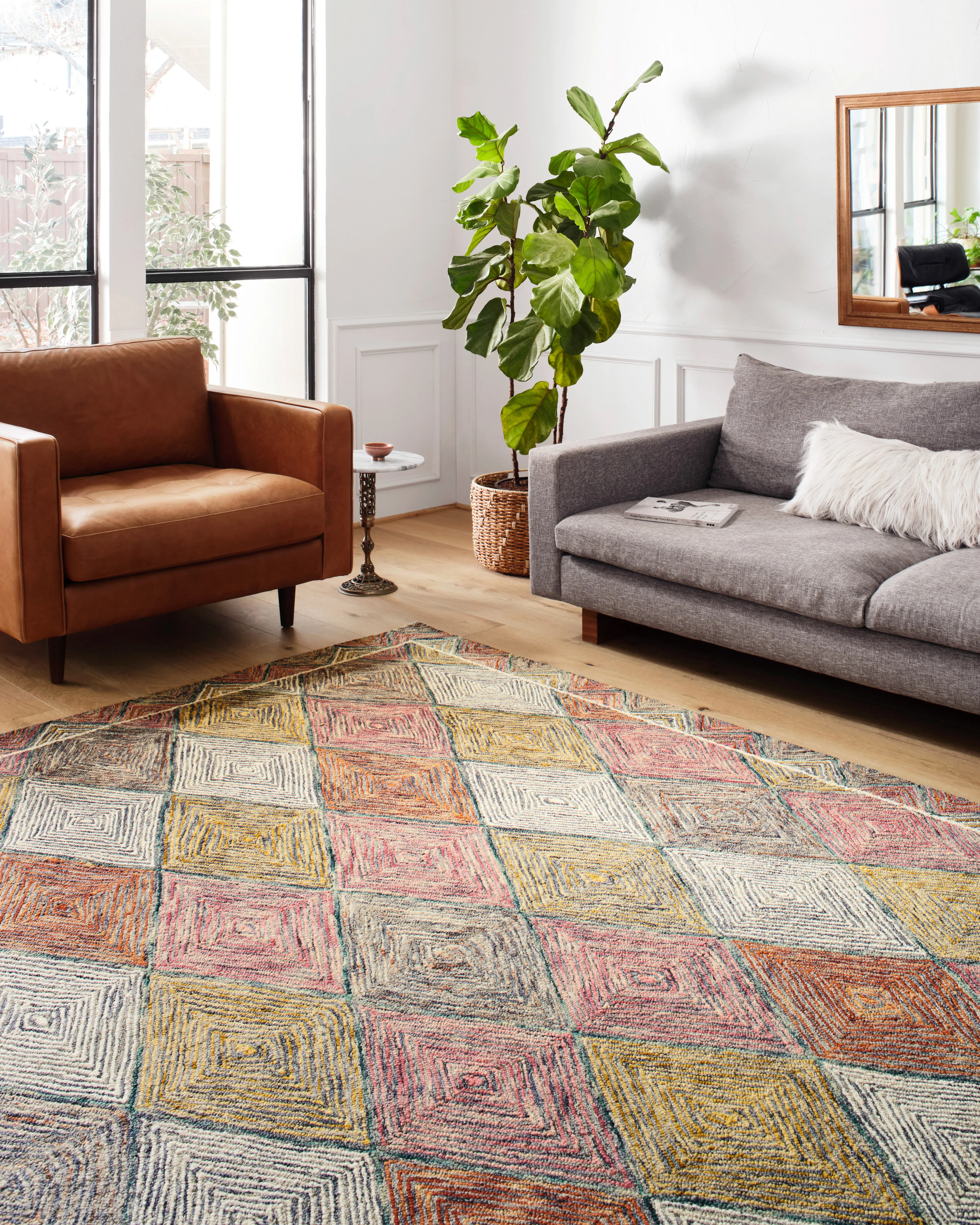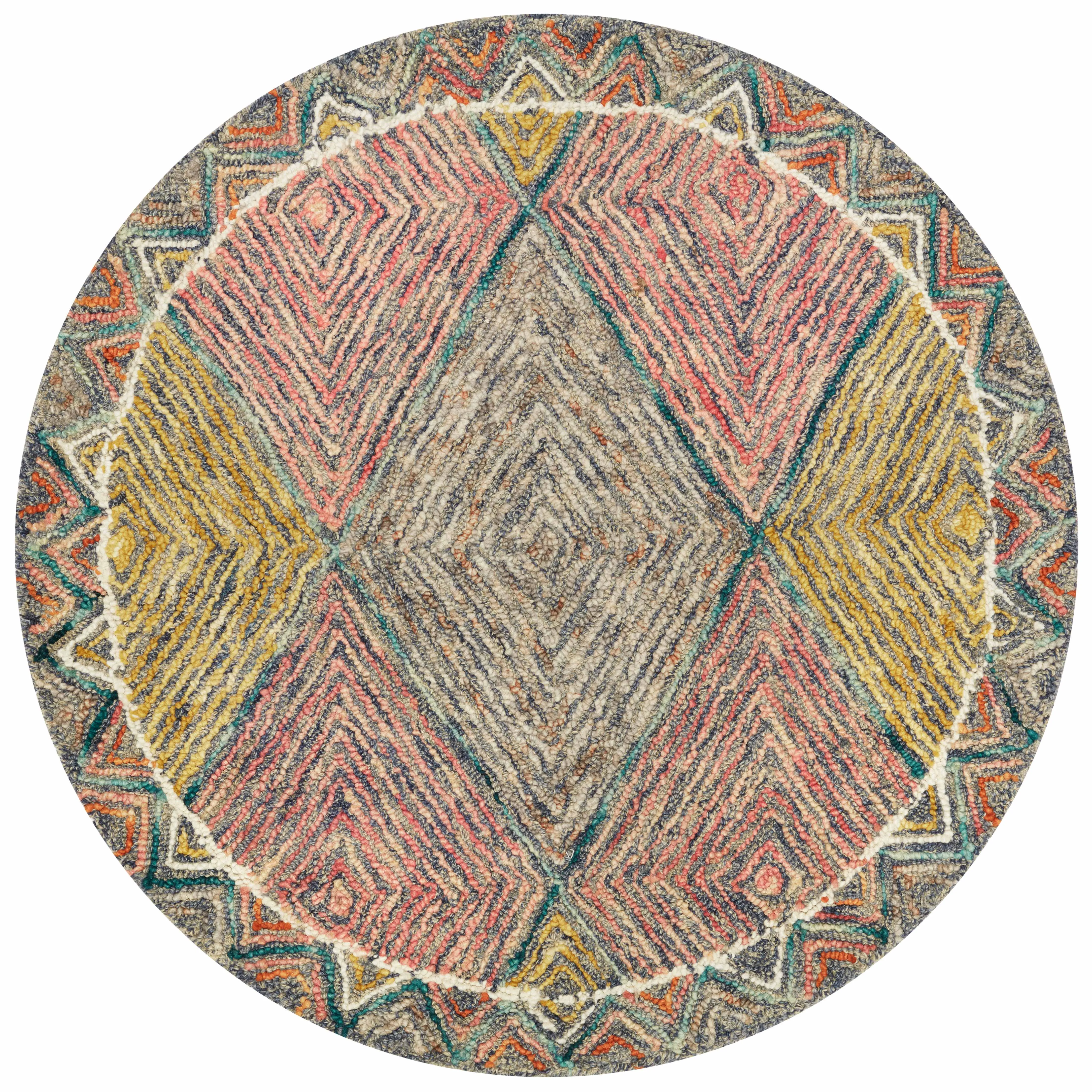 Hooked of wool by artisans in India, The Spectrum collection features vibrant color and texture. Playful and eclectic, this collection is a geometric focal point for any space.