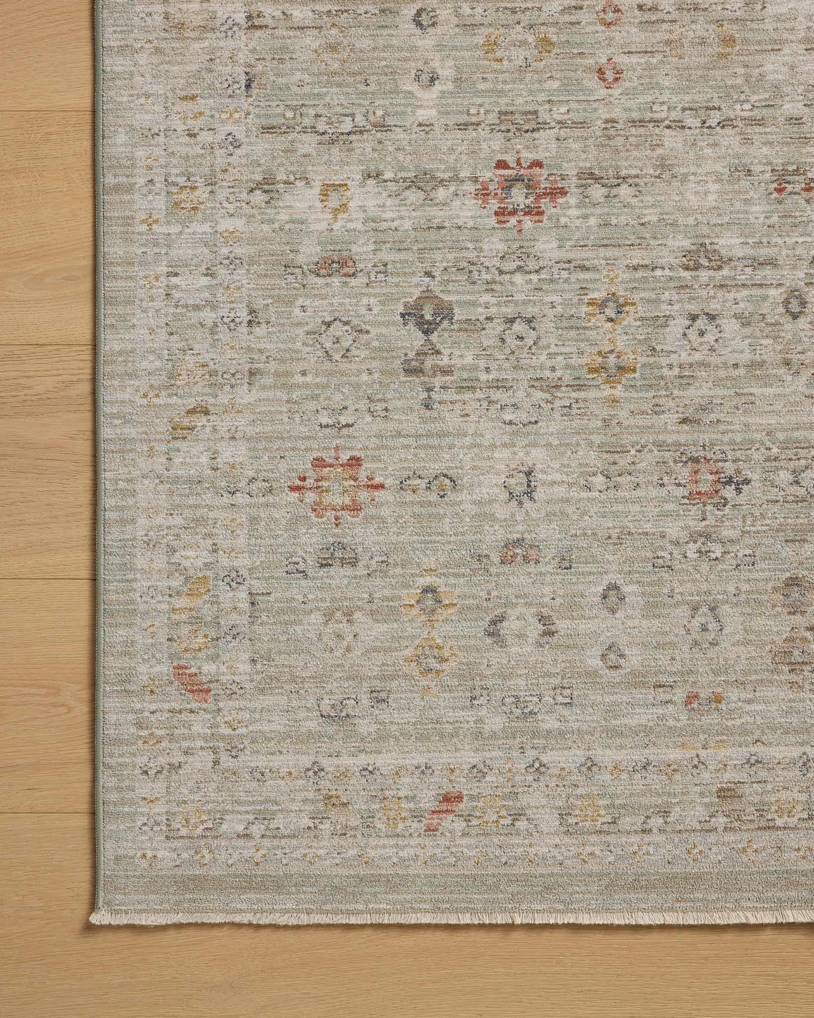 The Ida Collection from Chris Loves Julia x Loloi is a vintage-inspired area rug with a soft, subtly textured pile similar to hand-knotted rugs. The rugs gentle distressing creates a timeless look, while its durability and earthy colorways make it a great choice for the busiest rooms of the home, especially living rooms, kitchens, and hallways. Ida is power-loomed of easy-to-clean, no-shed shrink polyester in Turkey and OEKO-TEX certified, ensuring its materials don't contain harmful substances.