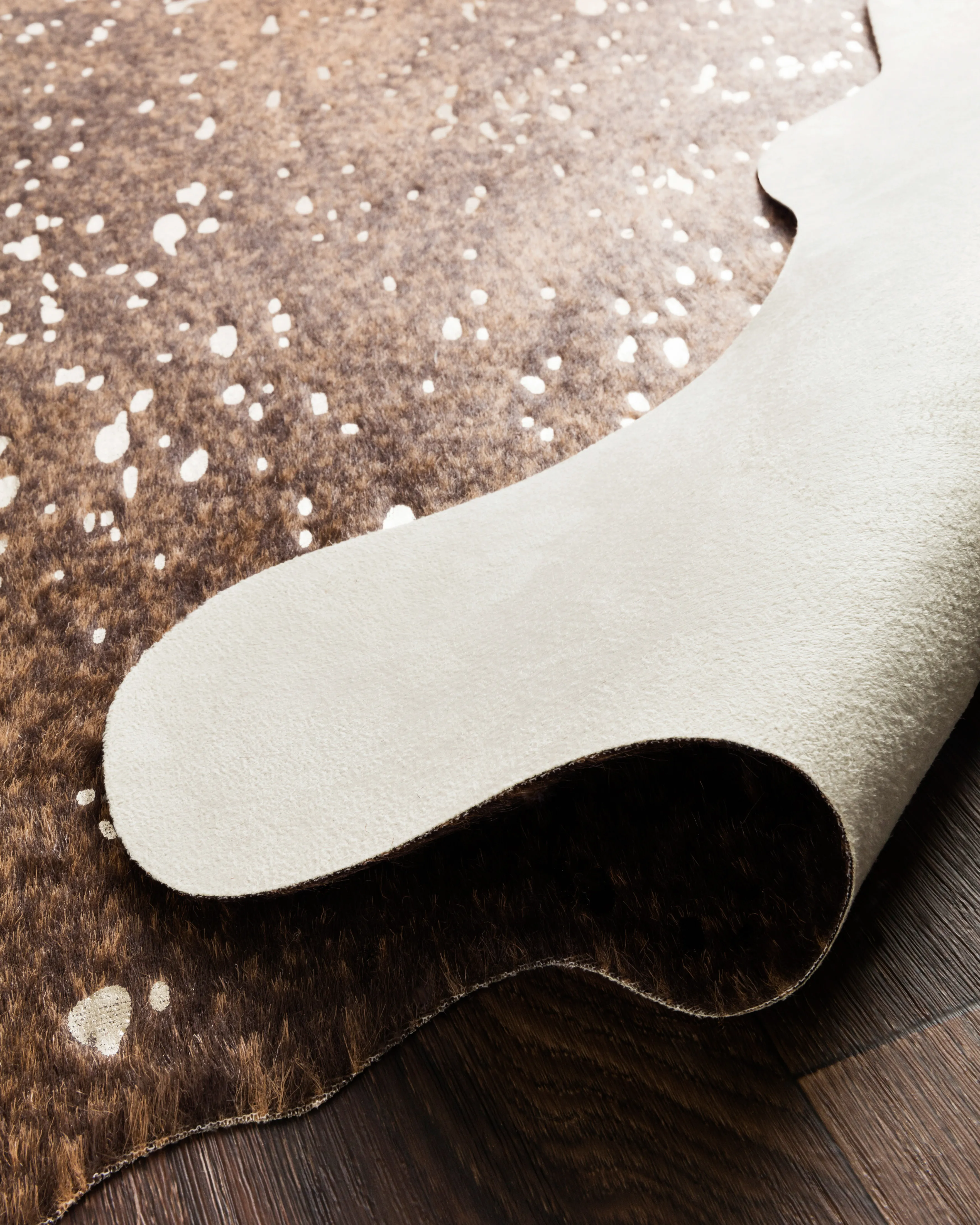 A compelling variant of the timeless cowhide rug, the Bryce Collection touts rich metallic accents set against versatile neutral tones. Power-loomed in China of acrylic and modacrylic pile, Bryce offers long-wearing durability for your busiest living room, dining area, or entry way.