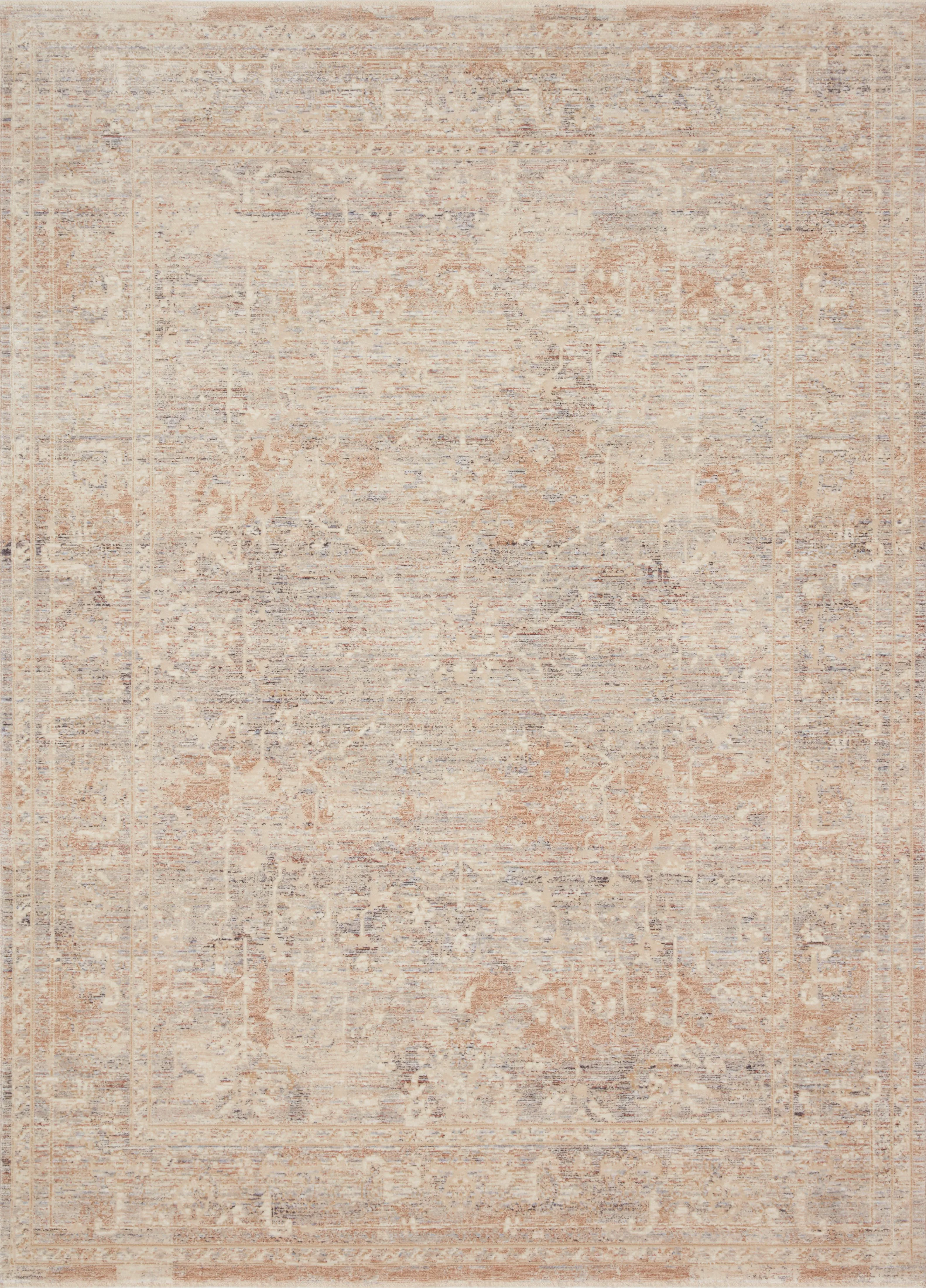 Power-loomed of polyester and viscose in Turkey, the Faye Collection displays a soft color palette and a mix of distressed and traditional-inspired motifs.