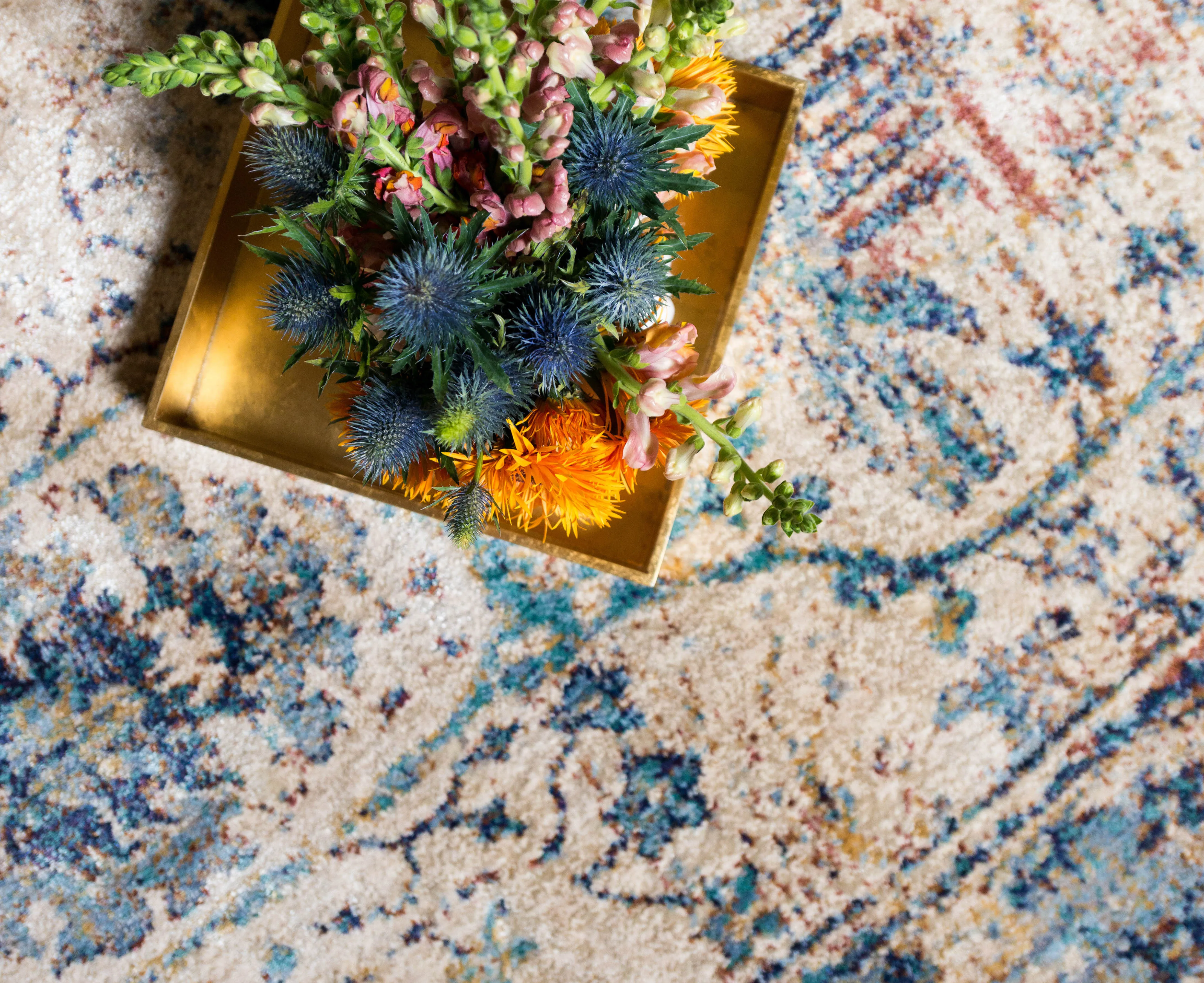 Ornate traditionals distressed and full of character are modernized by illuminating color-ways in the Anastasia collection. Power loomed in Egypt of polypropylene and polyester, Anastasia not only is durable and easy care, but gives the appearance of being a fine rug made by hand. The intricate detail, luster of colors, and unbeatable price point establish the value of this outstanding collection. Anastasia is available in various sizes including rounds and runners. Clean spills immediately by blotting with a clean sponge or cloth. Vacuum regularly. Professional cleaning recommended. Rug pad recommended for use on hard floor. Pile Height 0.25" Backing Weight 0.5799 lbs/sq ft