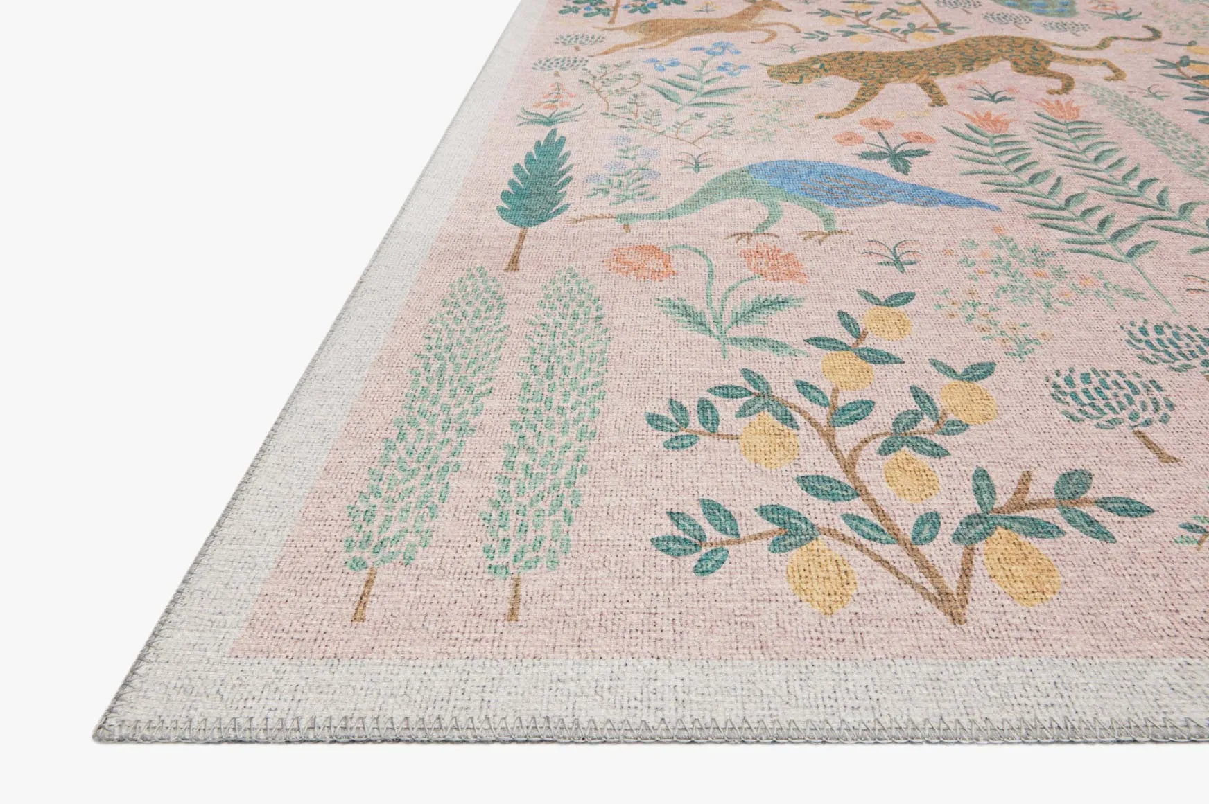 Power-loomed of 100% polyester pile in Turkey, the Menagerie Collection for Rifle Paper Co. x Loloi brings whimsy to the home. Featuring soft hues, thriving botanicals, and quiet forest creatures, Menagerie was designed to bring the iconic illustrations to life and built to withstand foot traffic.